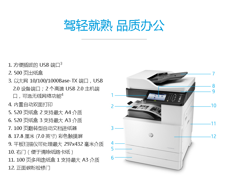 - 商品名称:惠普(HP)MFP M72625dn黑白/E77422dn 彩色激光 A3幅面 大型商用打印/复印/扫描数管理型码复合机 M72625dn