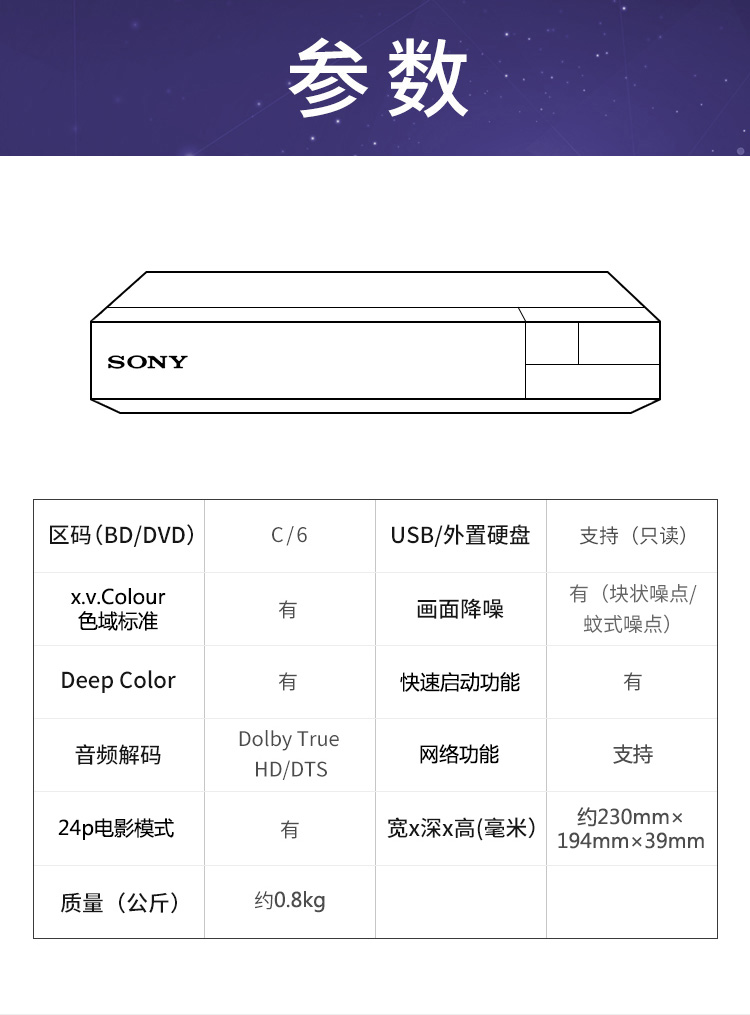- 商品名称:索尼(SONY)BDP-S1500 蓝光DVD 支持USB播放 支持网络视频 播放机 黑色