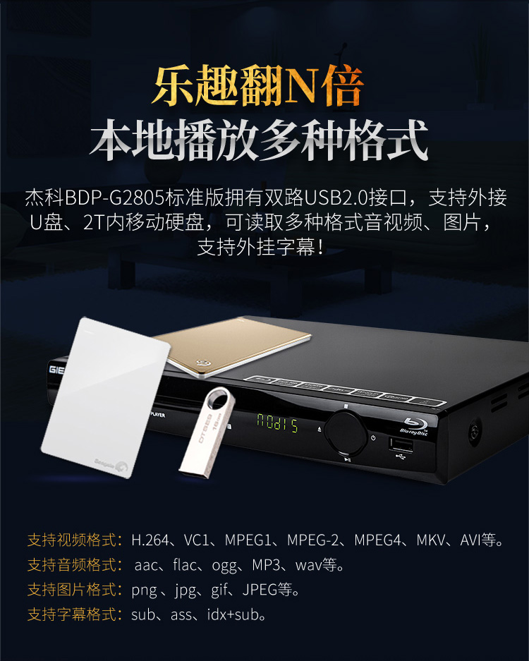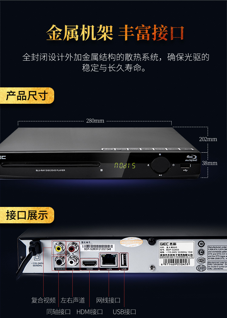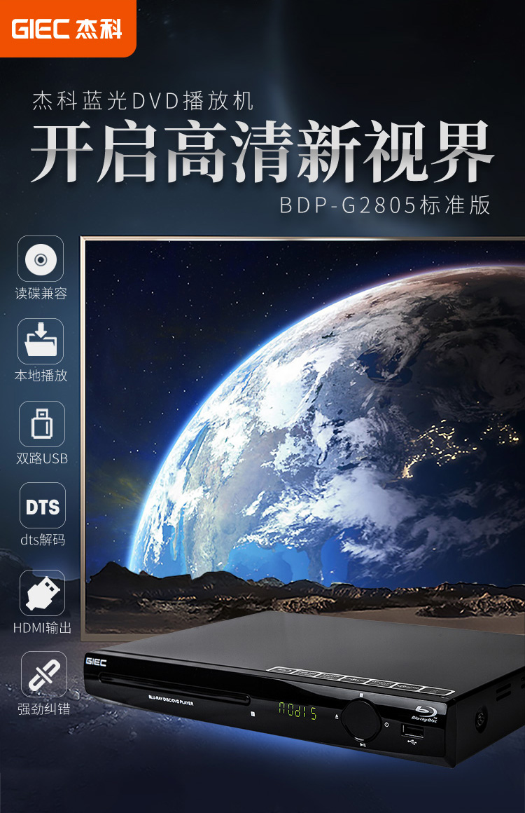 - 商品名称:杰科(GIEC)BDP-G2805标准版蓝光DVD播放机家用CD/VCD机高清USB硬盘播放器