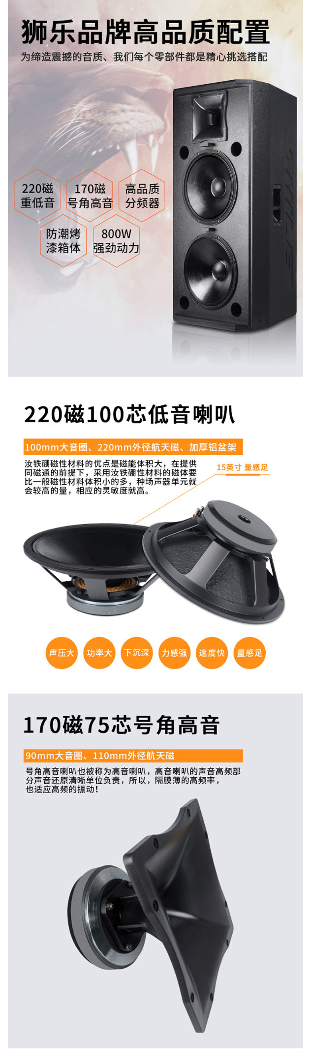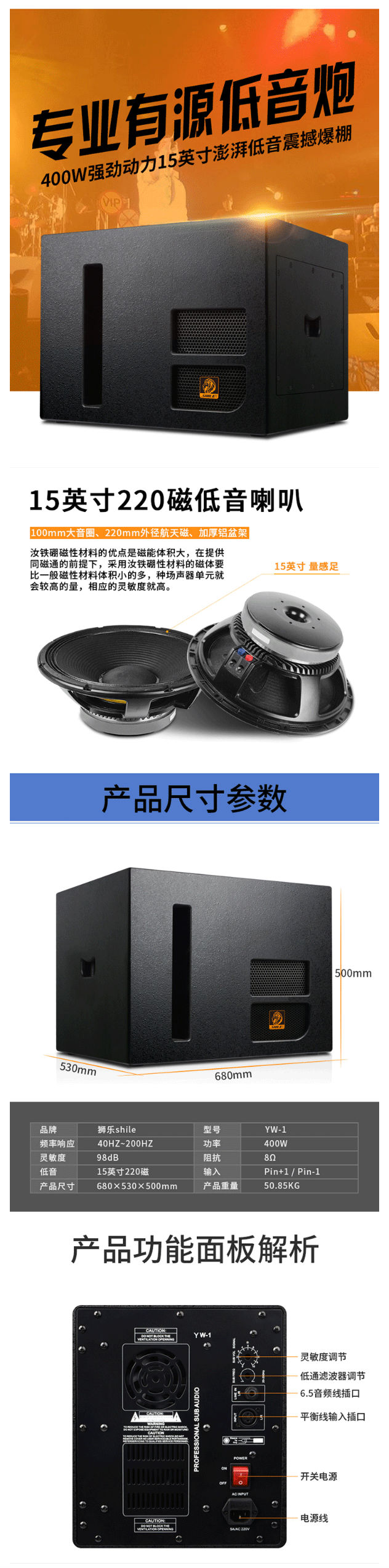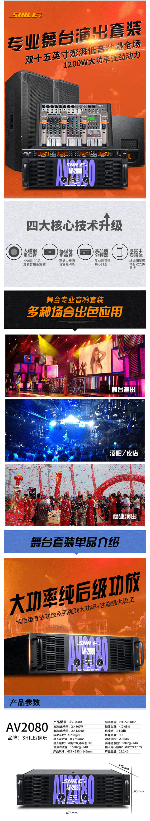 - 商品名称:狮乐(SHILE)AV2080+BM25+YW1+天琴十号+SH10 专业双15英寸大型舞台音响 户外演出活动大功率音箱套装