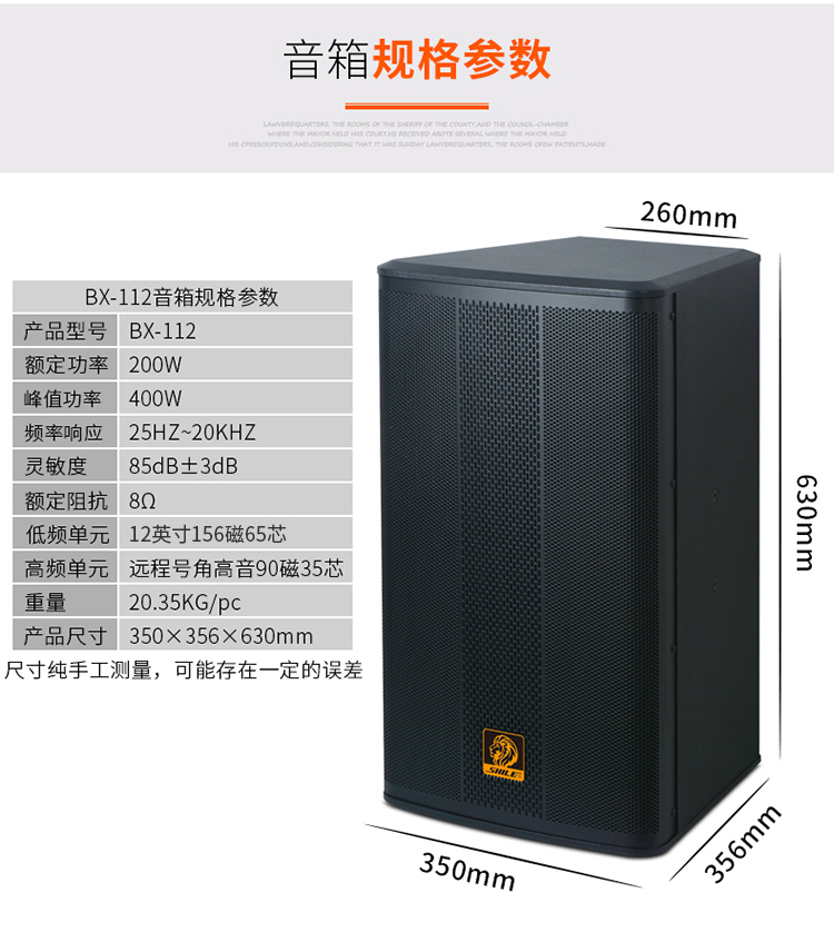 - 商品名称:狮乐(SHILE)KTV音响企业会议活动唱歌后级大功率带调音台卡拉OK音响系统AV2011D+BX112+天琴八号+SH22