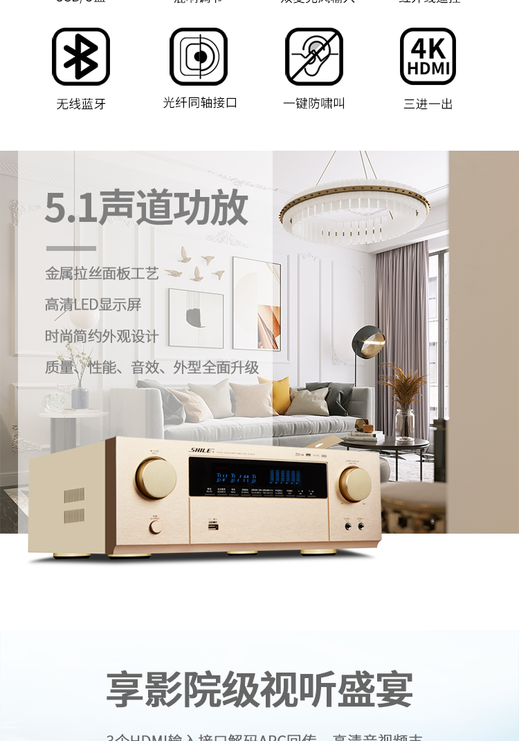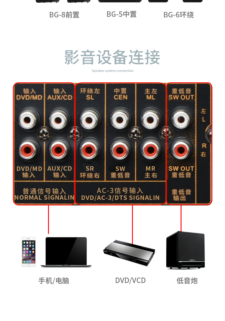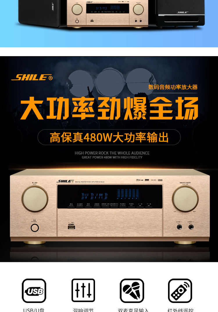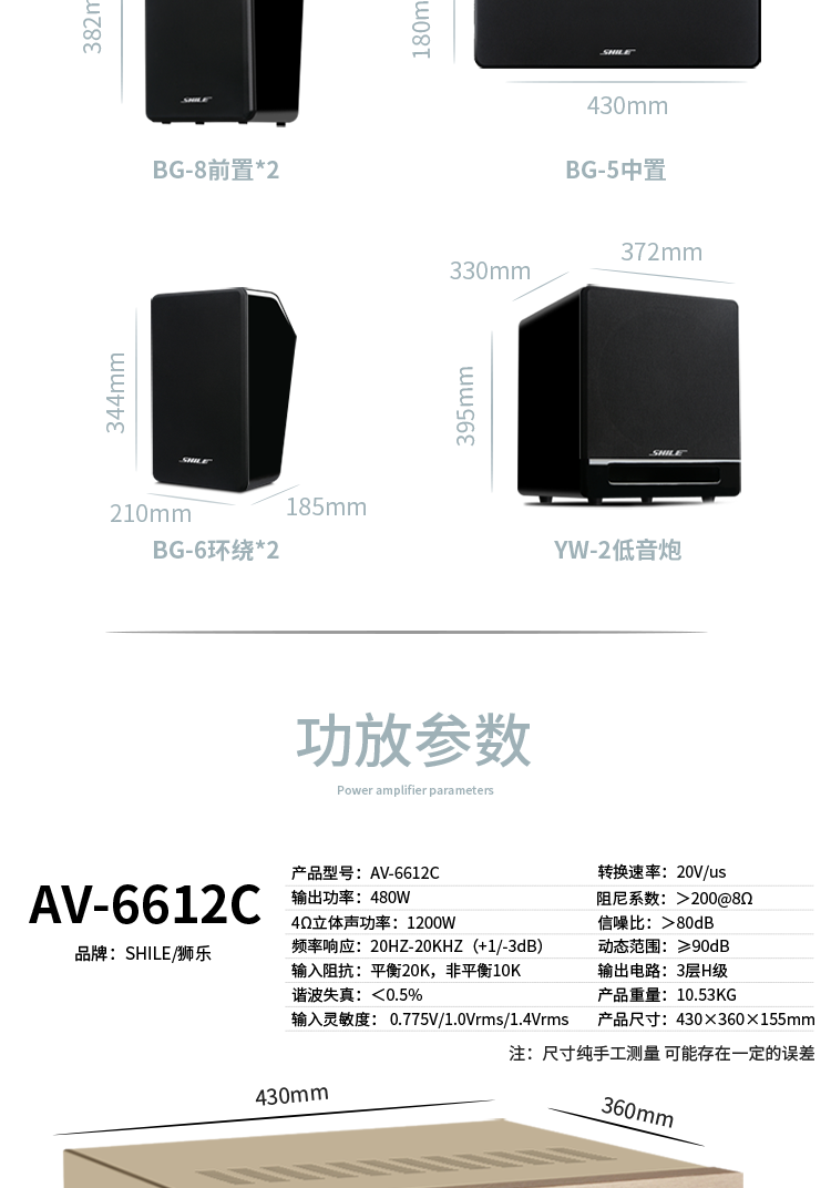 - 商品名称:狮乐 (SHILE) AV-6612C+BG-8+BG-6+BG-5+YW-2家庭影院5.1家庭KTV系统3D音效高清音频视频480W大功率输出
