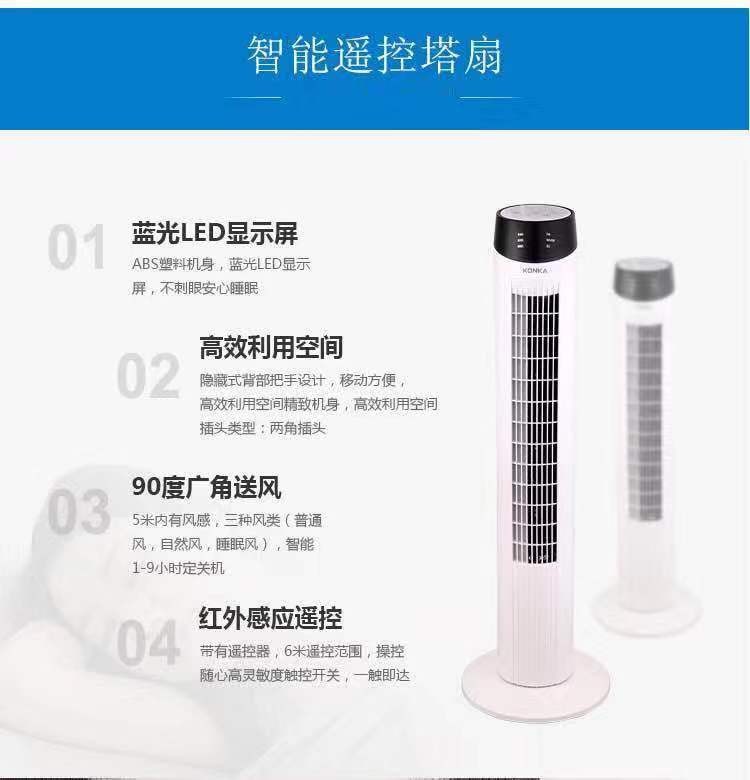 - 商品名称:康佳(KONKA)电风扇遥控塔扇定时LED显示屏落地扇 蓝光LED遥控款KF-TAS18Y04
