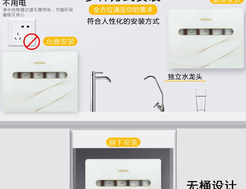 - 商品名称:康佳(KONKA)净水器KUF-M2型号不用电无废水家用净水器