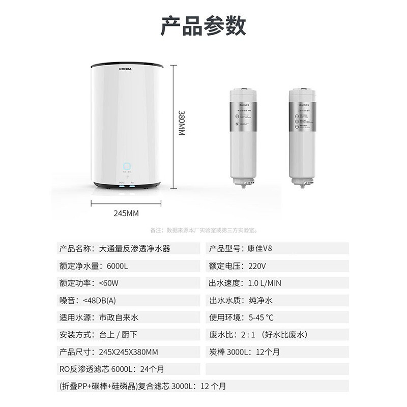 - 商品名称:康佳(KONKA)净水器V8大通量反渗透净水器RO直饮机