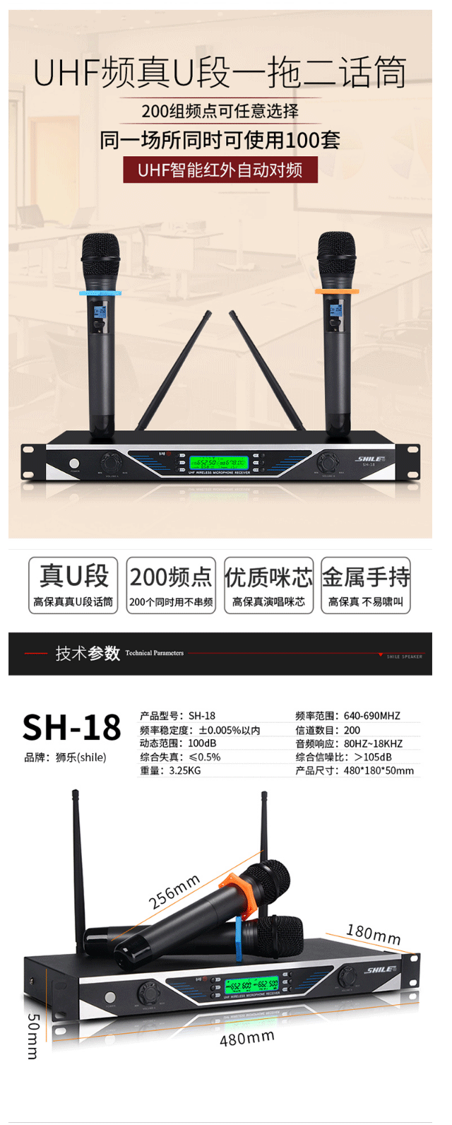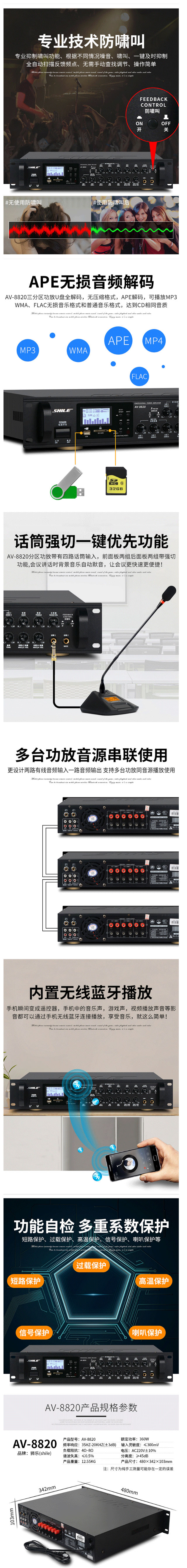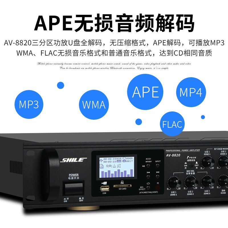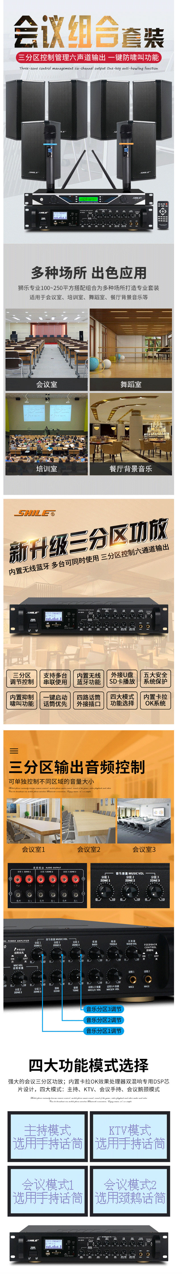 商品名称:狮乐(SHILE)会议音响系统定阻功放+壁挂音响 专业会议设备店铺背景音乐音响系统 8820+BX-108黑*6+SH18