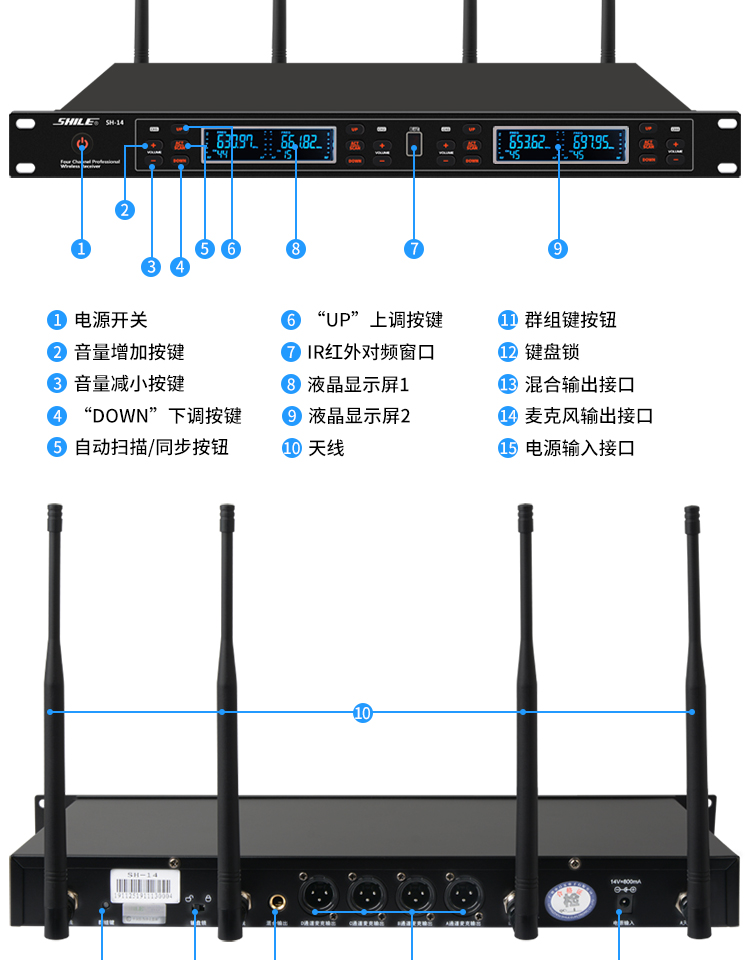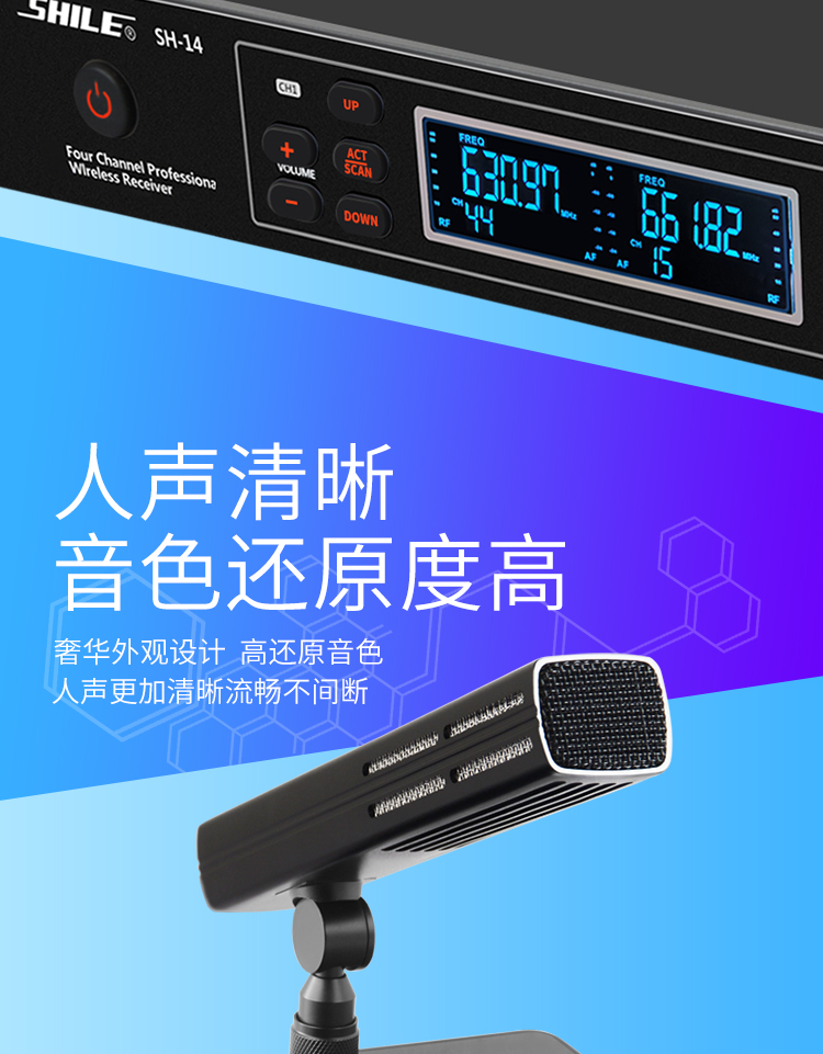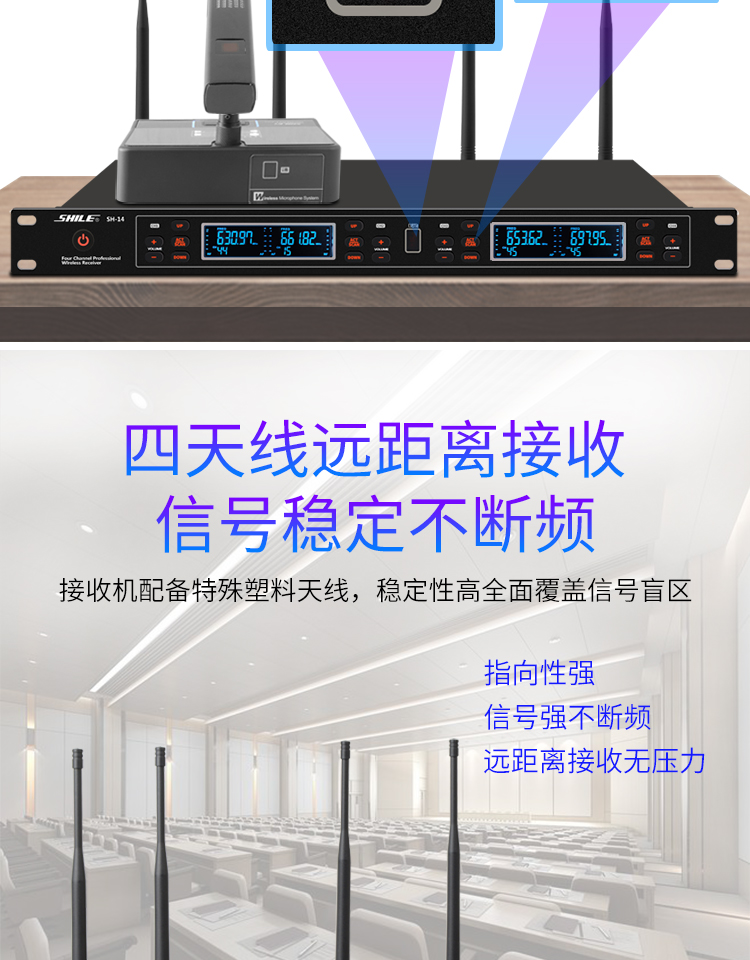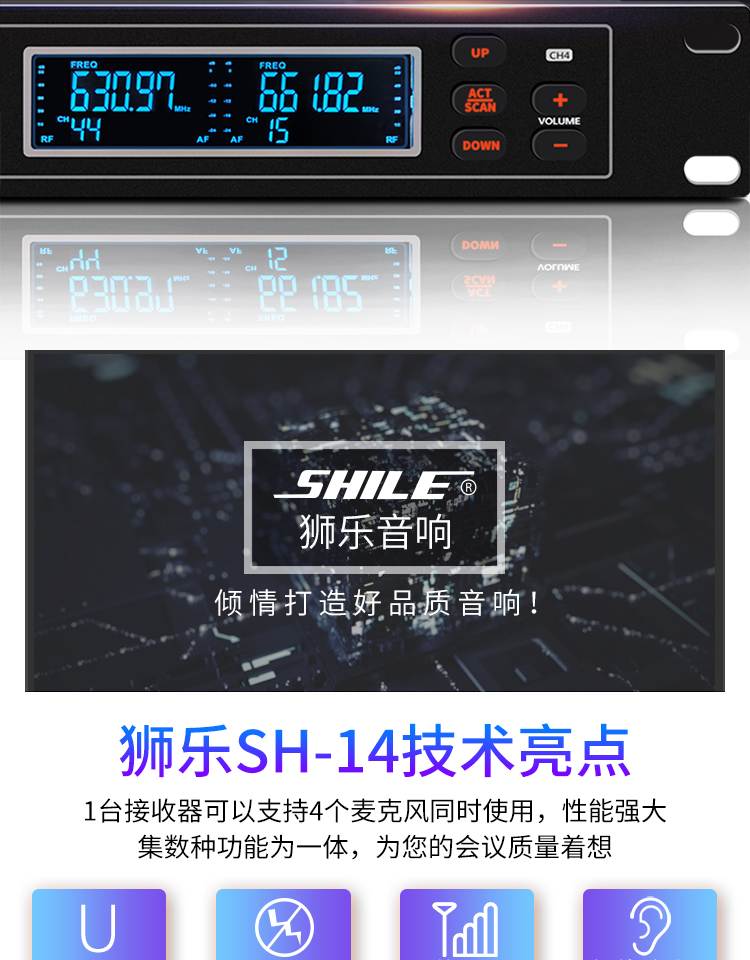- 商品名称:狮乐(SHILE)SH14无线会议话筒一拖四U段铝合金专业会议话筒