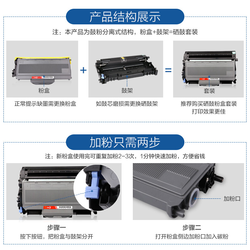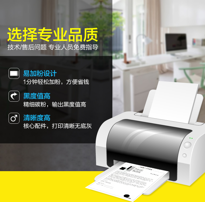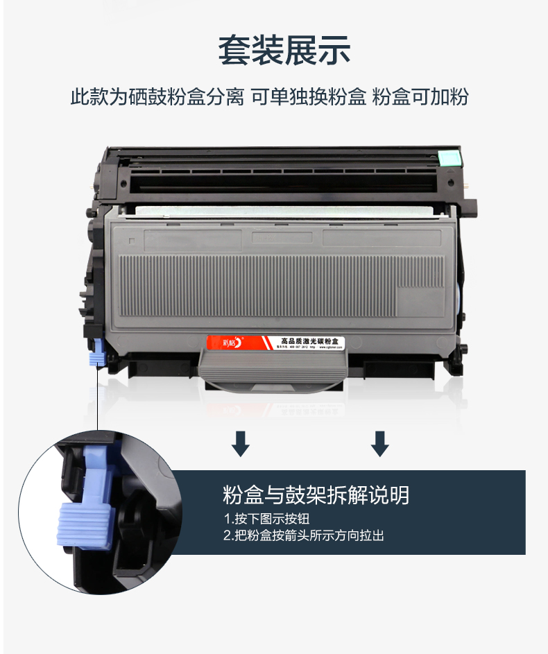- 打印量:硒鼓架12000页;粉盒2600页(5%覆盖率下A4纸打印量)