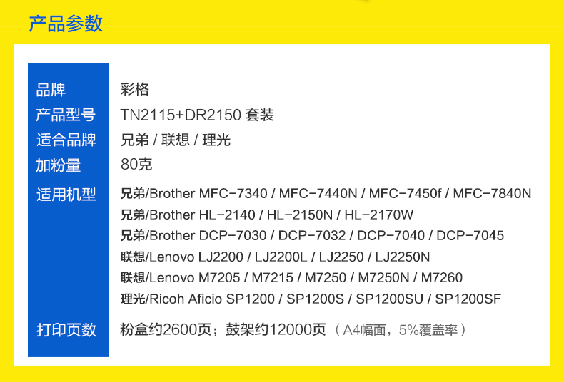 - 商品名称:彩格适用兄弟7340硒鼓粉盒套装 TN-360 TN2115套装 2140 7450 2150 7030 7040 7340粉盒套装