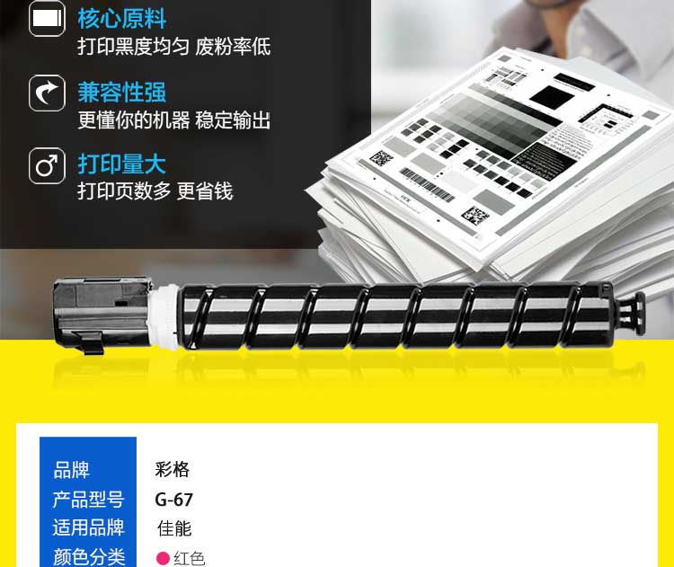 - 商品名称:彩格适用佳能复印机NPG-67粉盒红色 C3020碳粉 C3330L C3325墨盒 C3320L墨粉筒 C3520 G67硒鼓