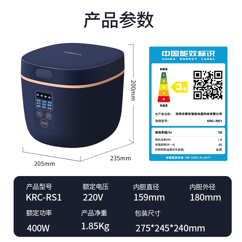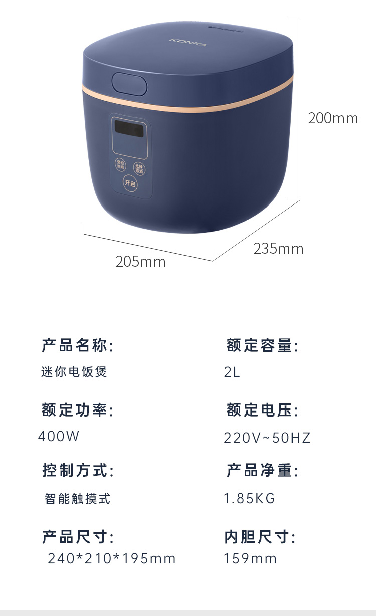 - 商品名称:康佳(KONKA)迷你电饭煲小电饭锅 2L容量智能温控24小时预约 KRC-RS1
