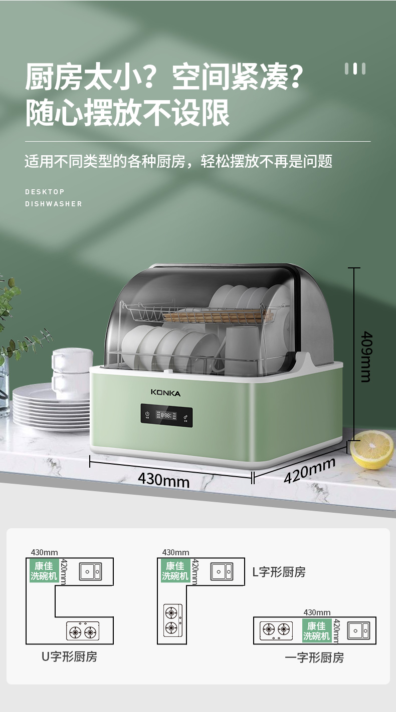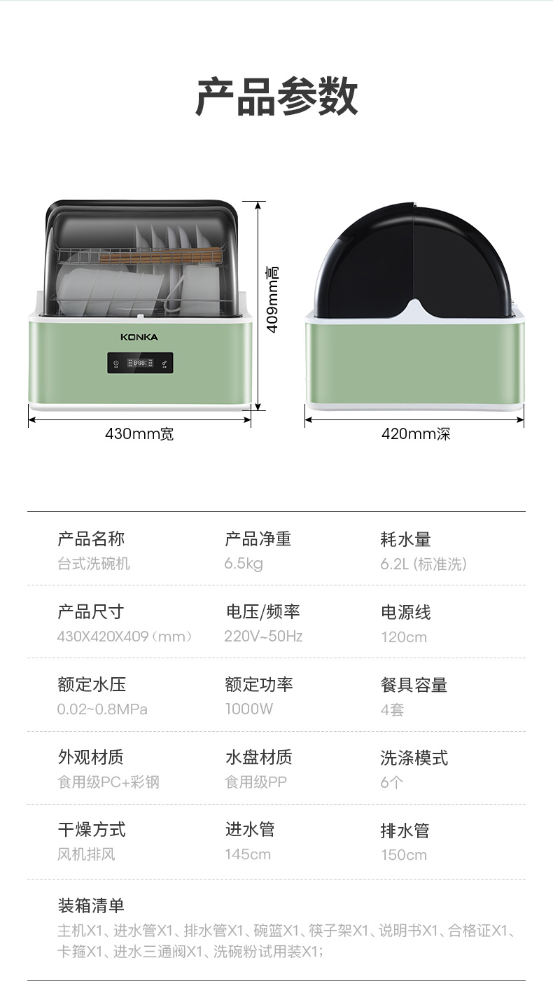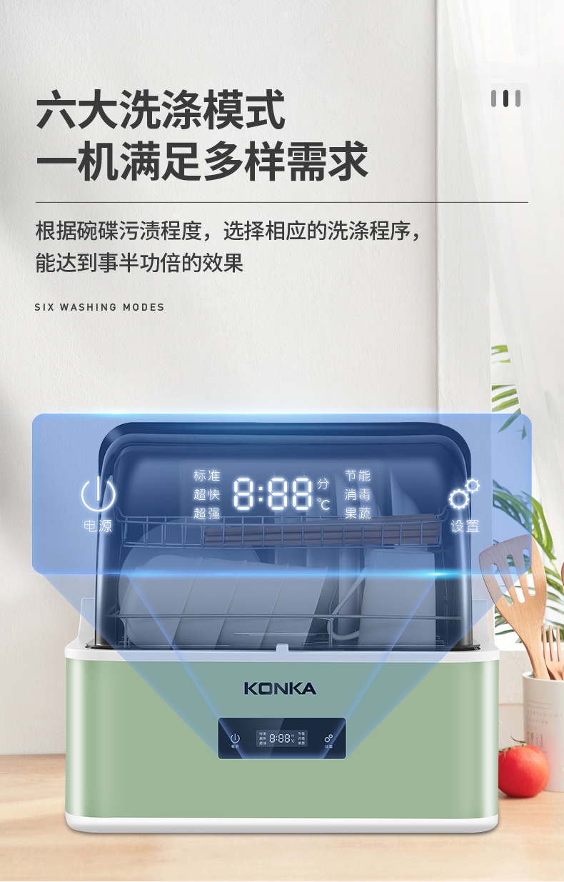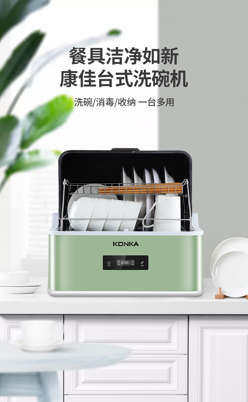 商品名称:康佳(KONKA)台式洗碗机 家用免安装刷碗机 4套大容量 超快洗 节能洗 果蔬洗 消毒除菌 WQP4-T01X