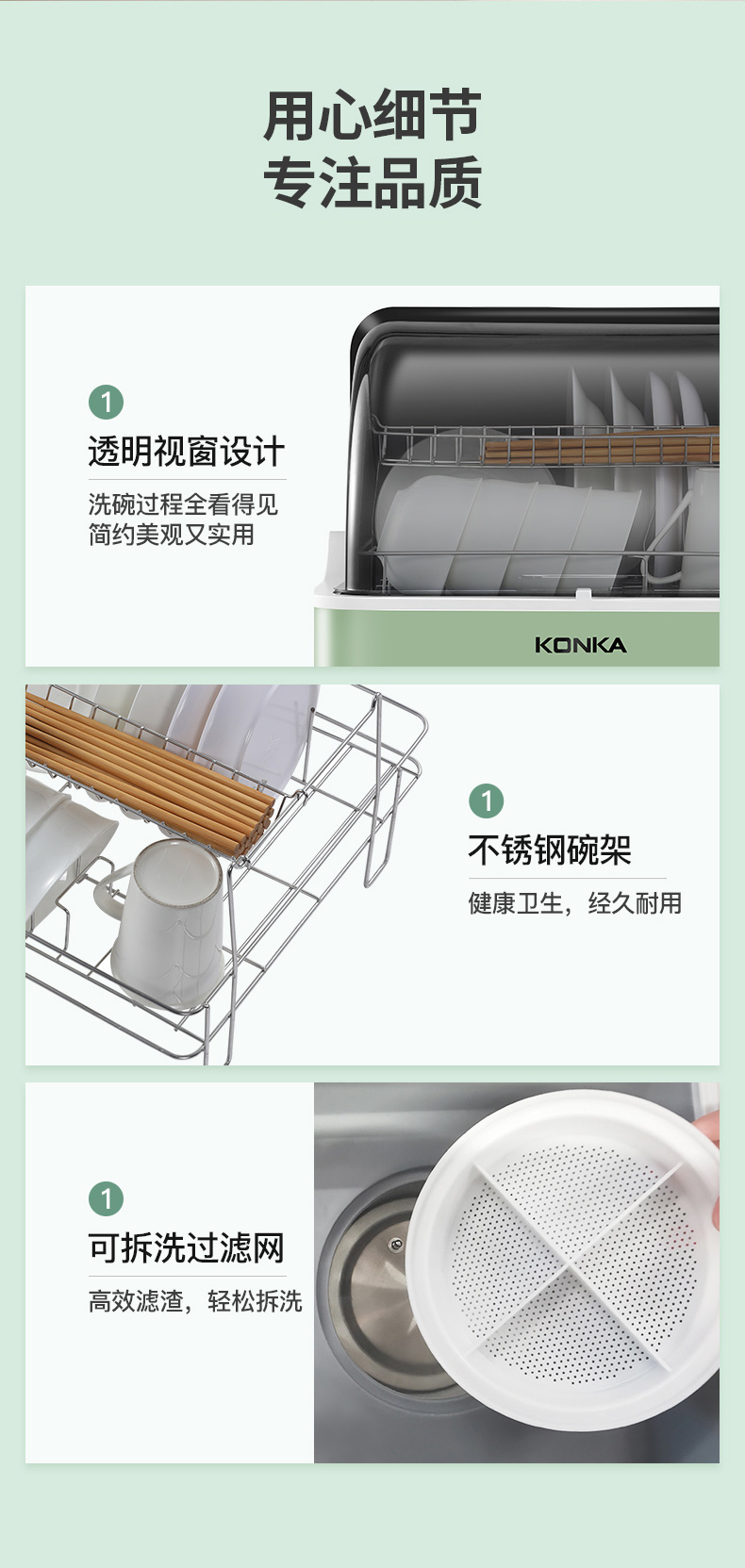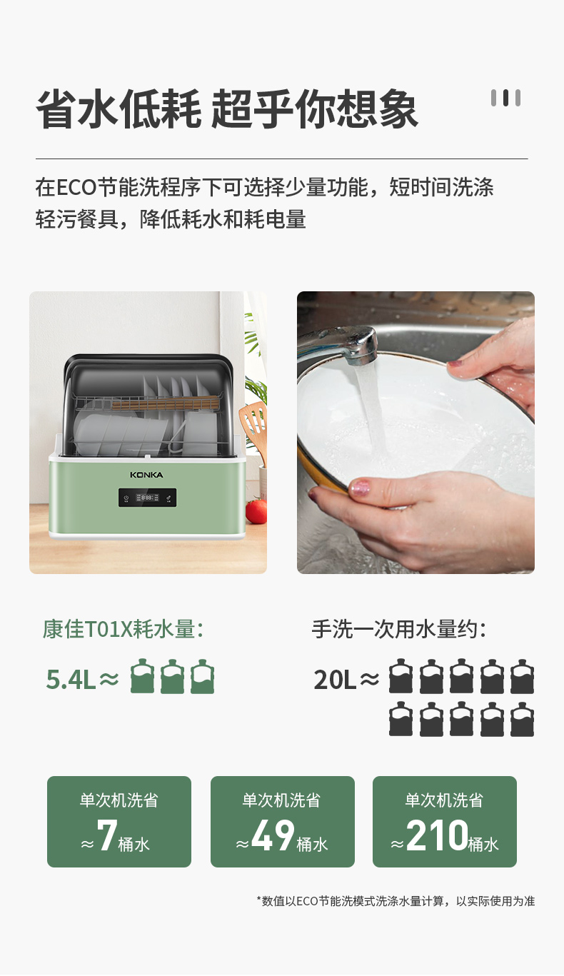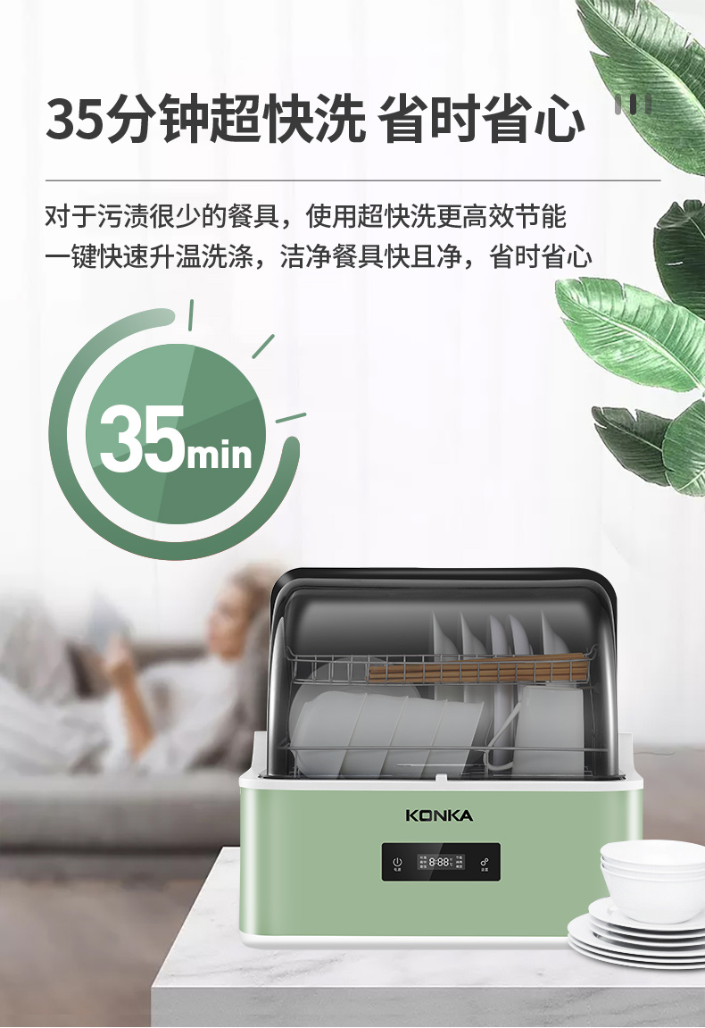 商品名称:康佳(KONKA)台式洗碗机 家用免安装刷碗机 4套大容量 超快洗 节能洗 果蔬洗 消毒除菌 WQP4-T01X