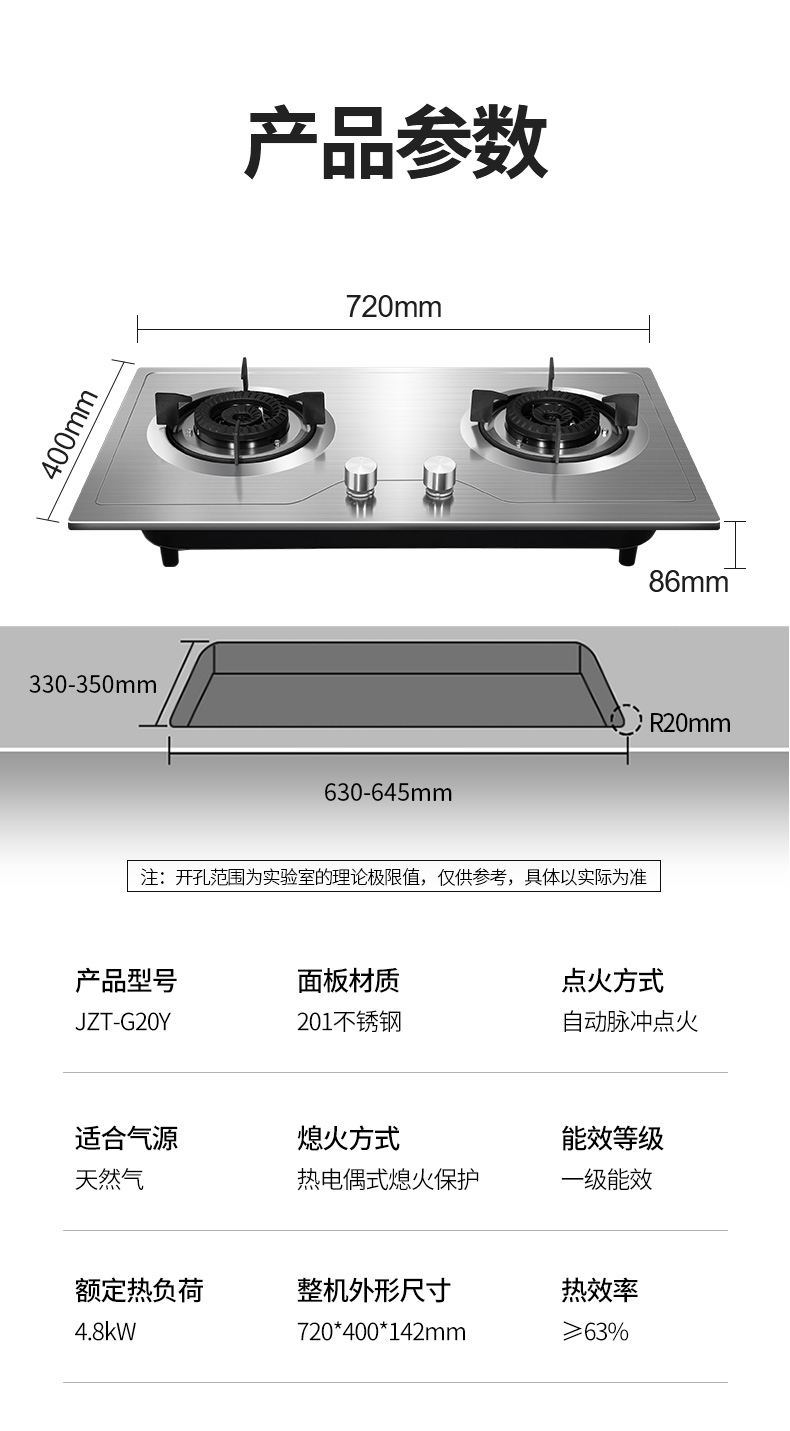 - 商品名称:康佳(KONKA)燃气灶双灶 4.8KW大火力灶具 家用台式/嵌入式不锈钢 JZT-G420Y 天然气