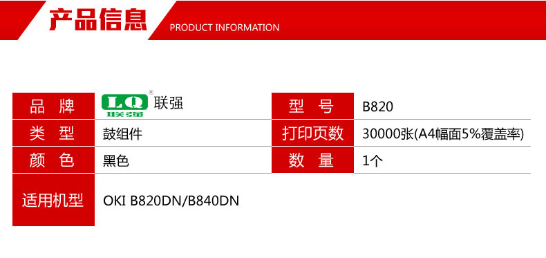 - 商品名称:联强B820感光鼓组件 适用OKI820DN/OKIB840DN