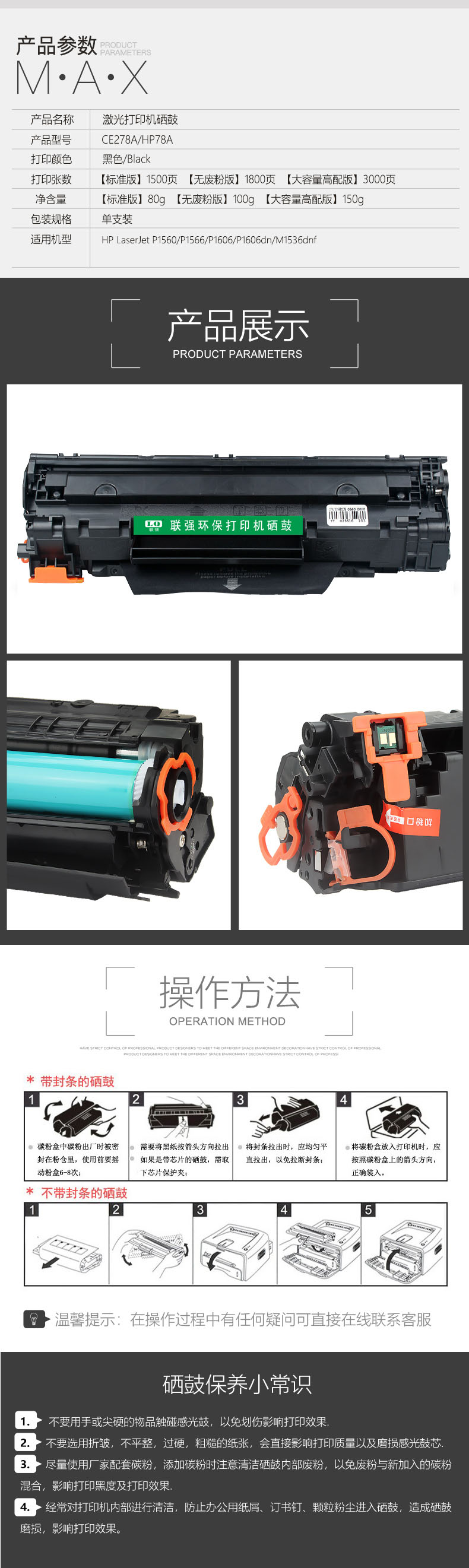 - 商品名称:联强CE278A硒鼓适用惠普HPLaserJetProP1566/P1606dnf/M1536dnf/CanonLBP-6200d