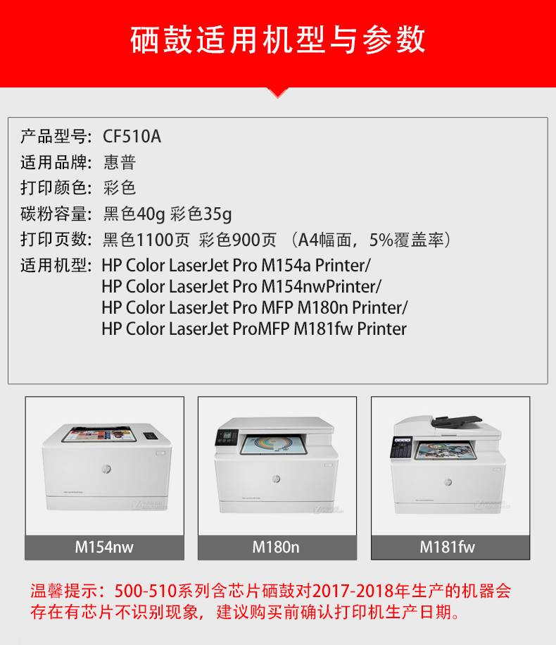 适用机型:适用惠普HP M154a/M154nw/M180N/M181FW