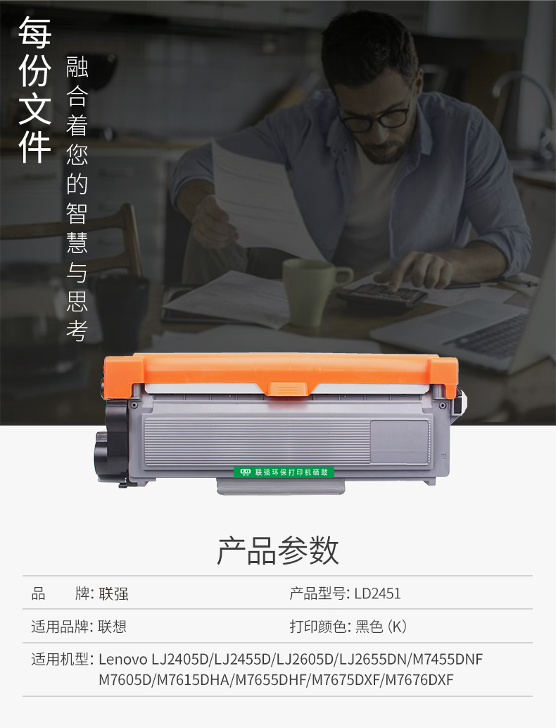 - 商品名称:联强LT2451墨粉盒 适用联想LJ2605D/LJ2655DN/M7605D/M7615DNA/M7455DNF/M7655DHF