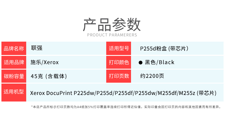 - 商品名称:联强P255b墨粉盒 适用富士施乐P255D/P255DW/M255Z/M255DF/CT201920