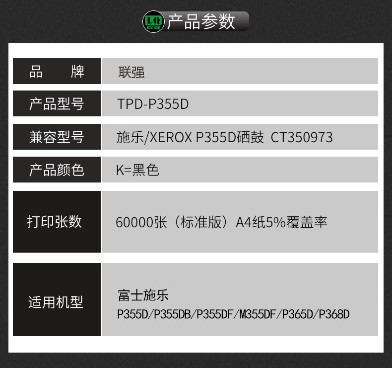 - 商品名称:联强P355D鼓组件 适用富士施乐P355d/P355db/P365d/P368d/M355df硒鼓感光鼓