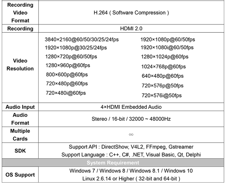 商品名称:天创恒达TC 710N4 HDMI采集卡 4路4K 高清 电脑pcie多路视频导播录制 SDK开发