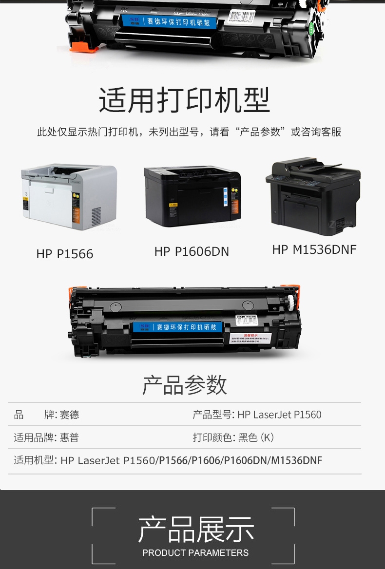 商品名称:赛德CE278A硒鼓适用惠普HPLaserJetProP1566/P1606dnf/M1536dnf/CanonLBP-6200d