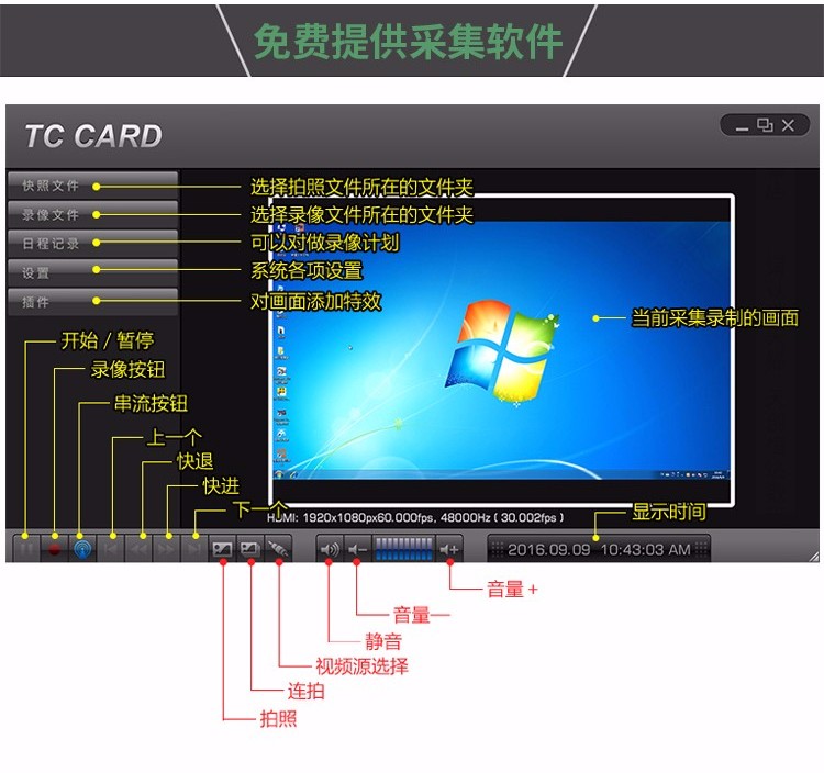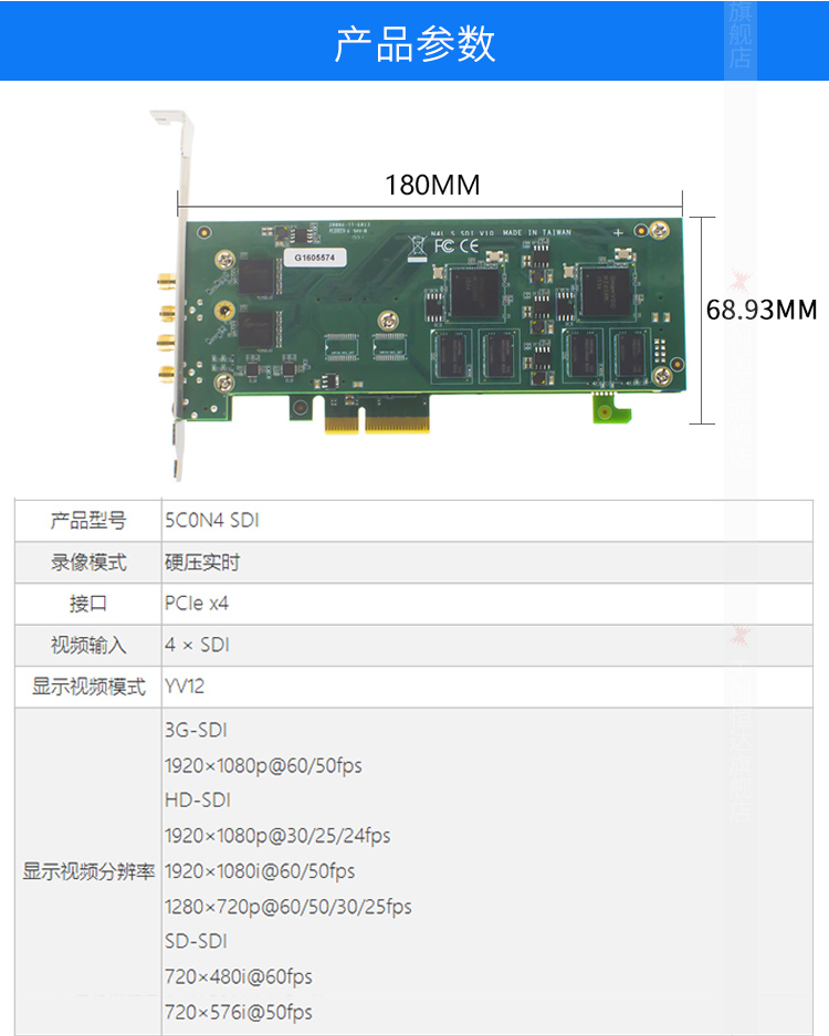 商品名称:天创恒达TC 5C0N4视频采集卡SDI高清直播导播 4路输入 PCI-E电脑图像采集卡SDK开发