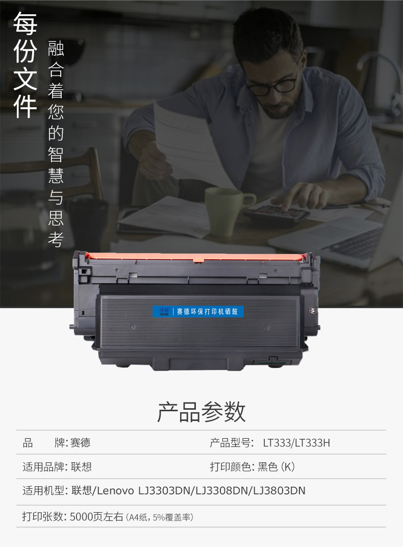 - 商品名称:赛德LT333粉盒 适用联想Lenovo LD333硒鼓/LJ3303DN/LJ3803DN/LJ3308DN