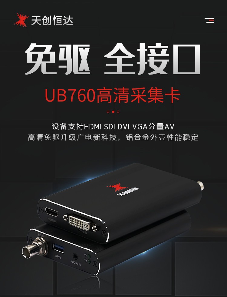 - 商品名称:天创恒达UB760采集卡HDMI SDI DVI高清录制盒ps4视频钉钉直播 电脑图像USB采集盒
