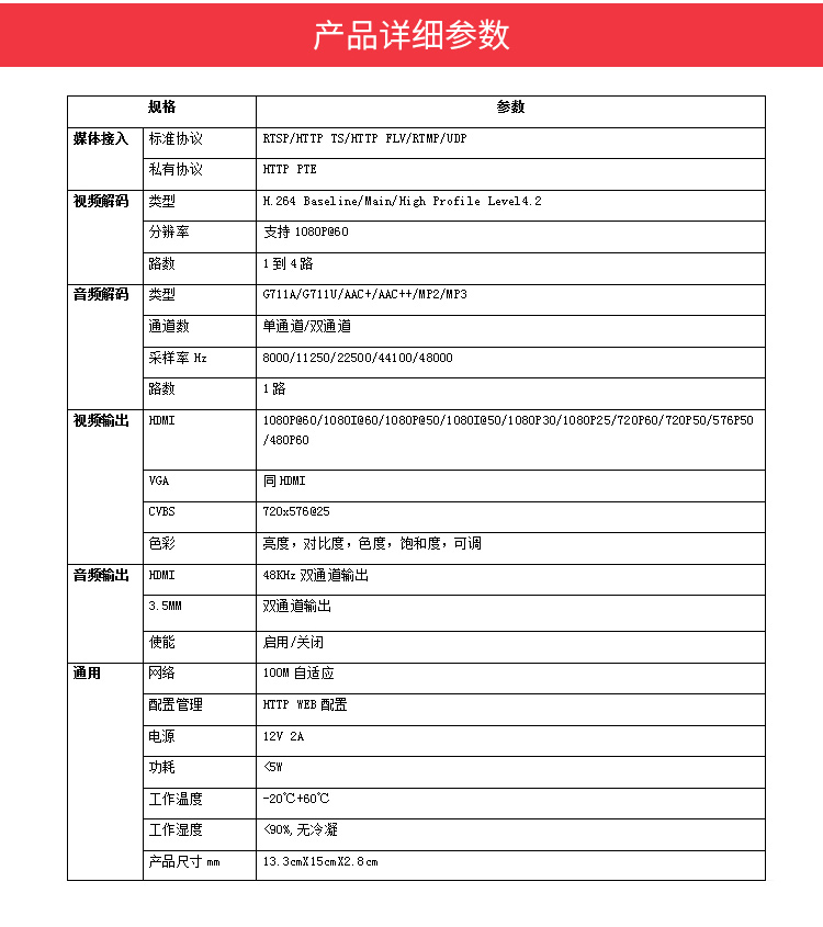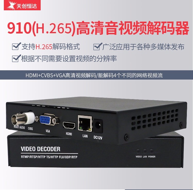 - 商品名称:天创恒达910D 视频解码器 高清视频输出HDMI CVBS直播RTSP拉流 监控视频转码器