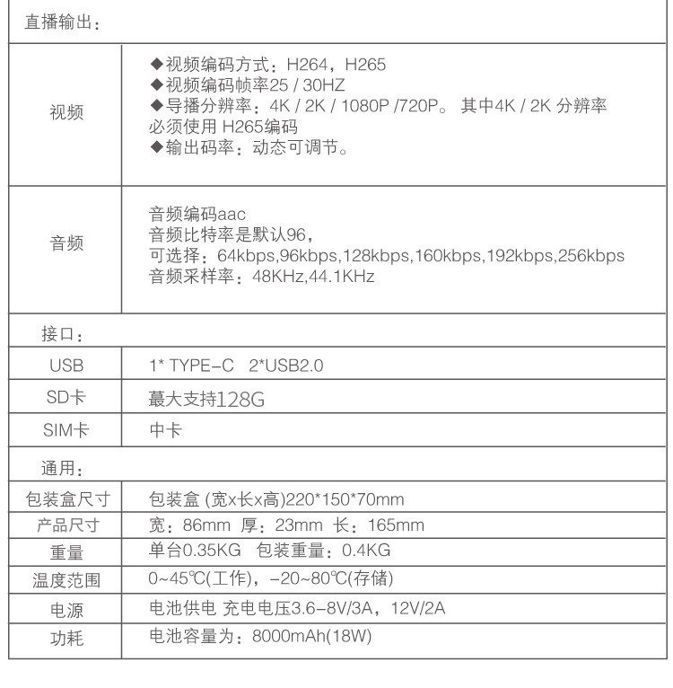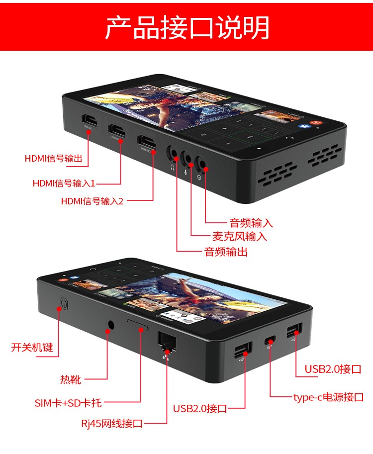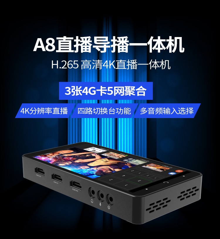 - 商品名称:天创恒达A8四路直播导播台 4G直播盒子RTMP编码器推流器 抖音快手微信赞钉钉网课视频直播机 A8 pro单机