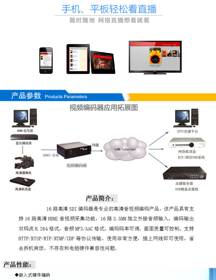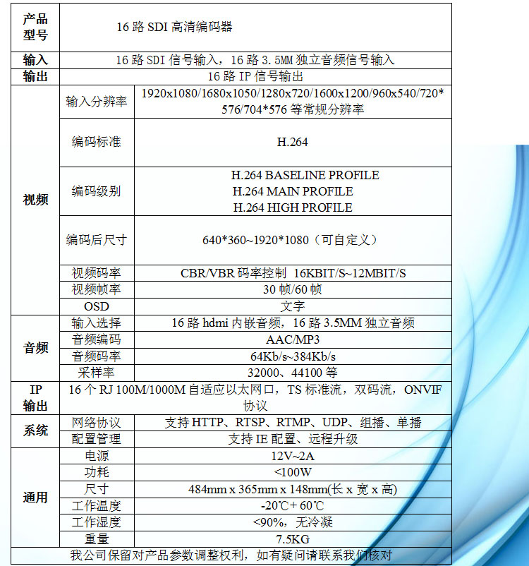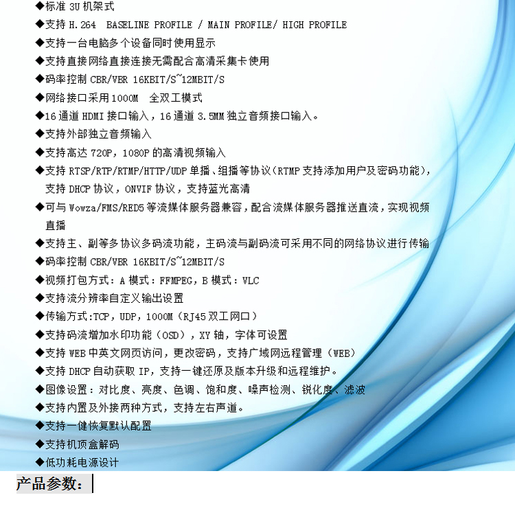 商品名称:天创恒达 EN6161 16路视频编码器 SDI 多路RTMP推流 网络视频直播高清编码机