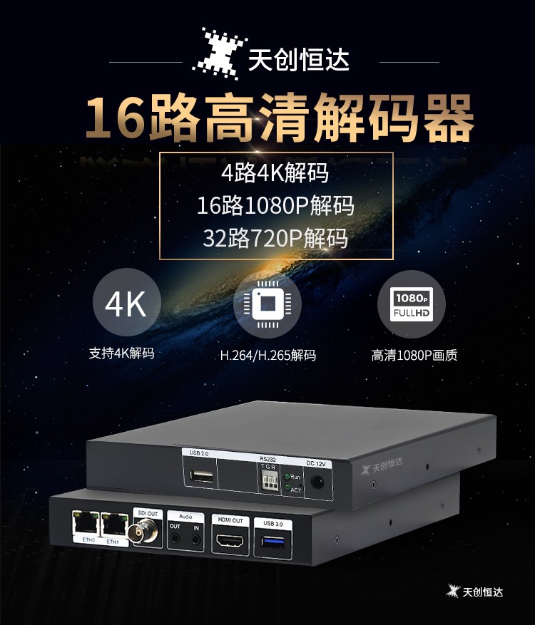 - 商品名称:天创恒达DE7116视频解码器 16路 32路高清4K解码器RTMP转HDMI SDI输出