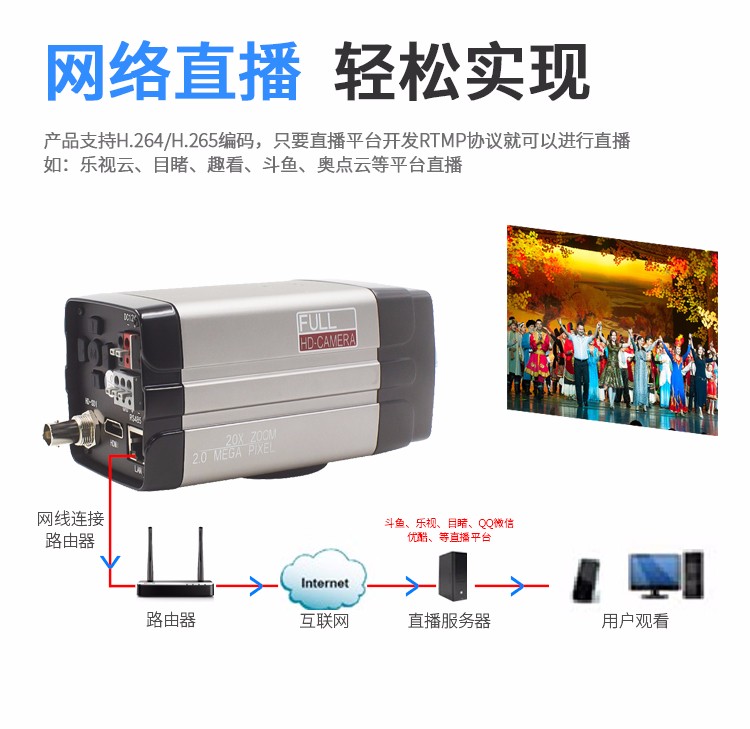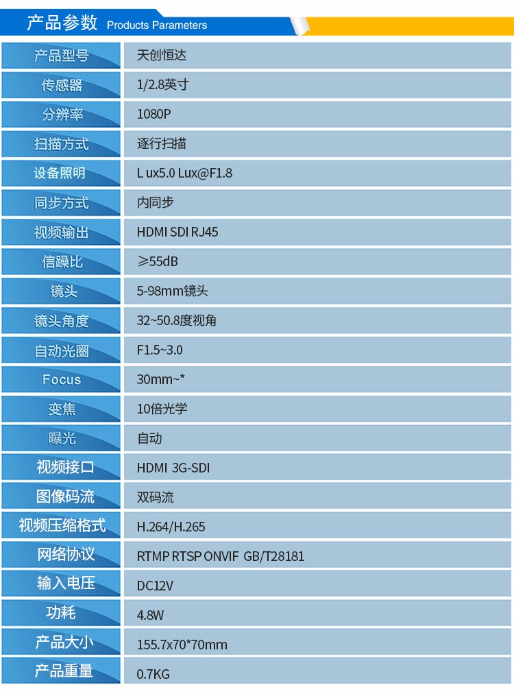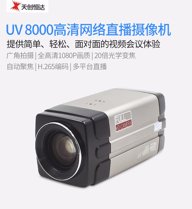 - 商品名称:天创恒达 UV8000直播摄像机20倍SDI HDMI 高清RTMP网络推流 网课直播 工业摄像头