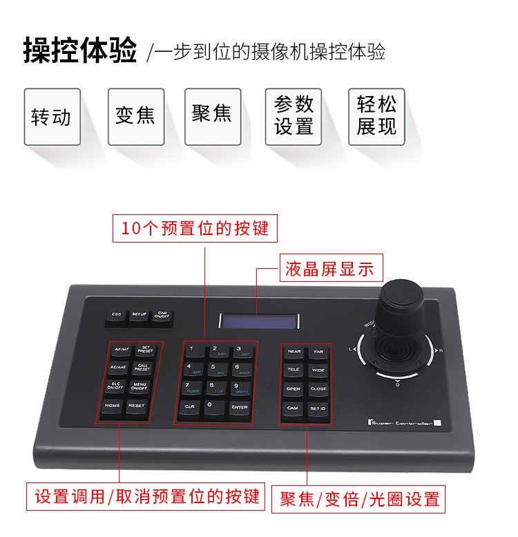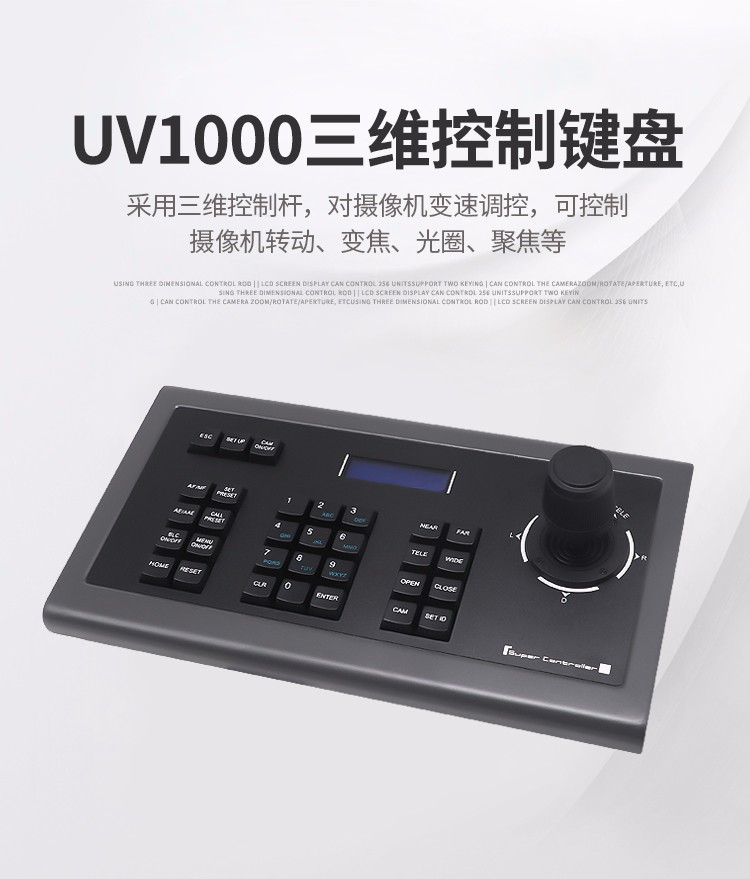 商品名称:天创恒达 UV1000 摄像机控制键盘 485/232/422协议 高清切换台摄像头控制键盘
