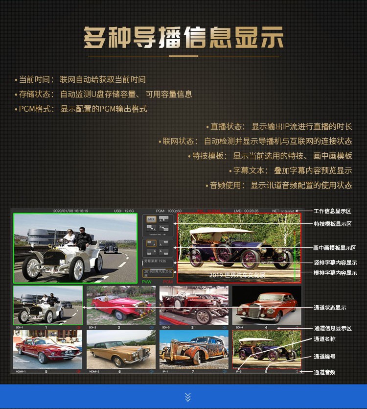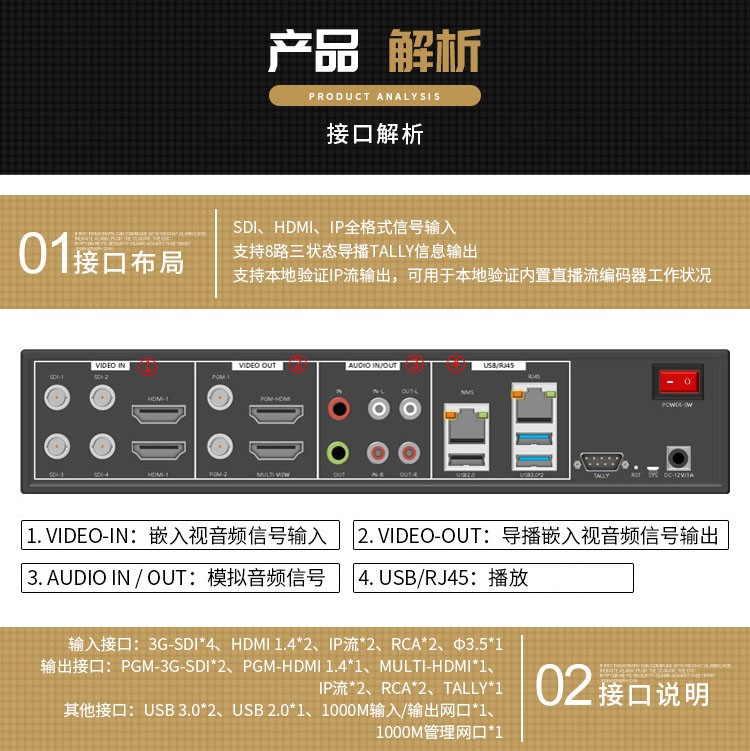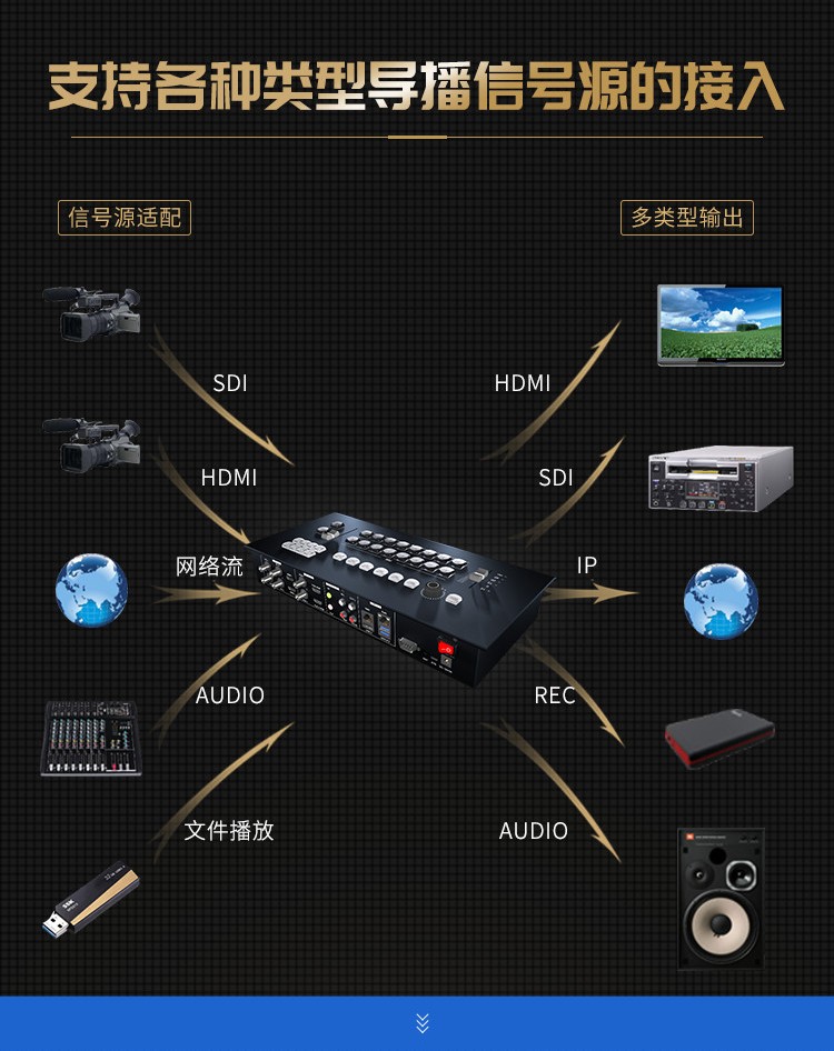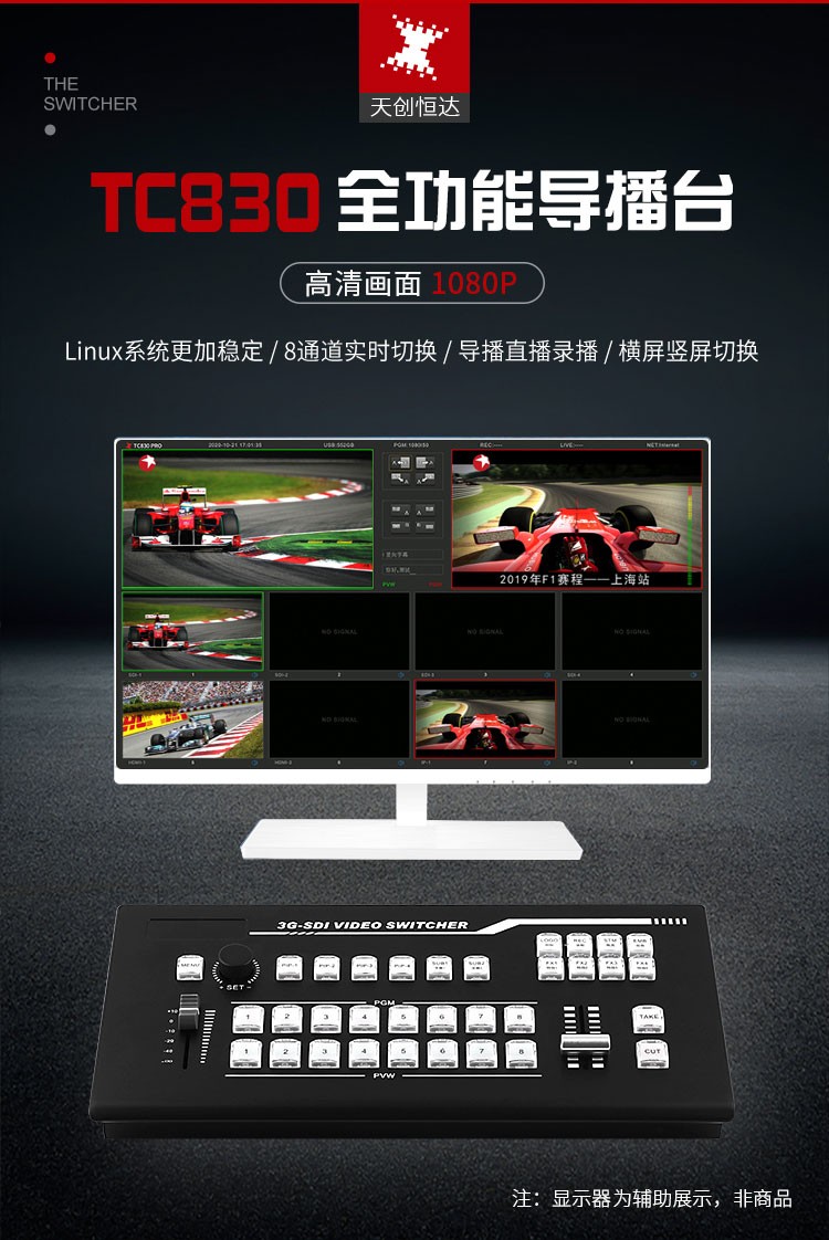 商品名称:天创恒达TCHD830导播切换台HDMI SDI 8路高清编码器RTMP视频推流器 4G多机位直播机