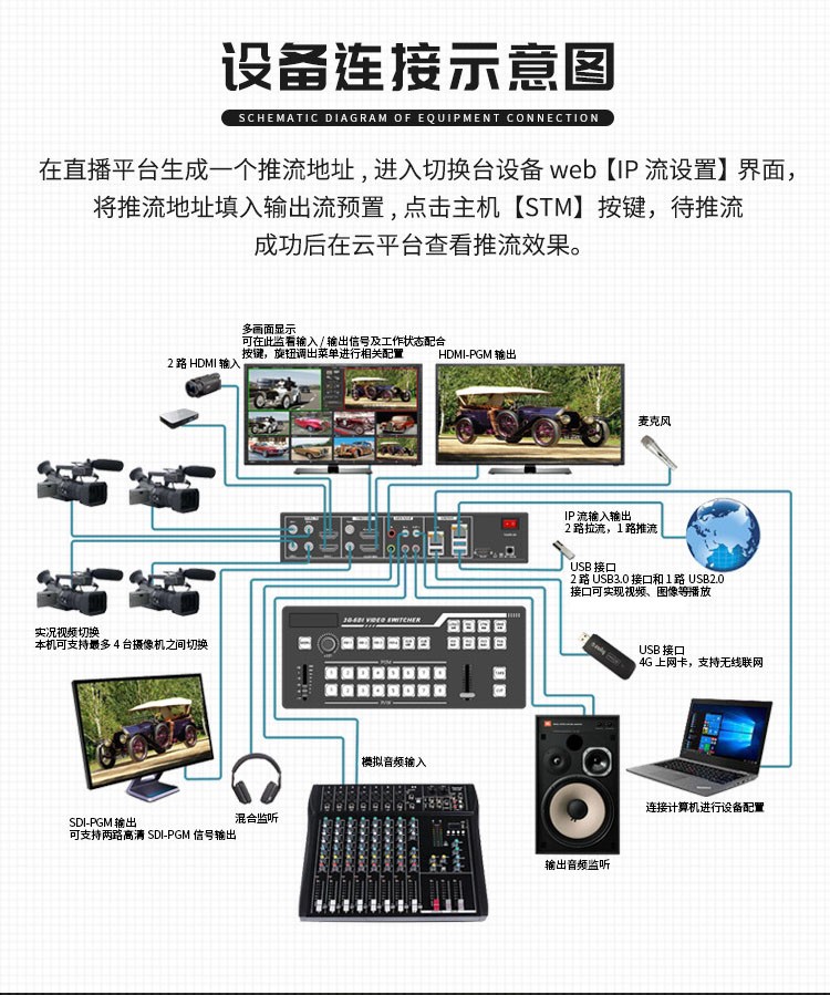 天创恒达TCHD830导播切换台HDMI SDI 8路高清编码器RTMP视频推流器 4G多机位直播机