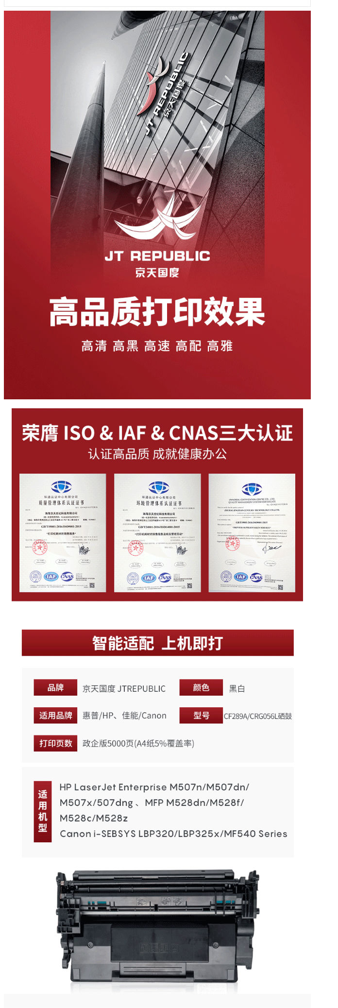 - 商品名称:适用惠普CF289A硒鼓hp89A墨盒MFP M528dn M528f粉盒M507n M507x M507dn打印机M528c M528z碳粉盒
