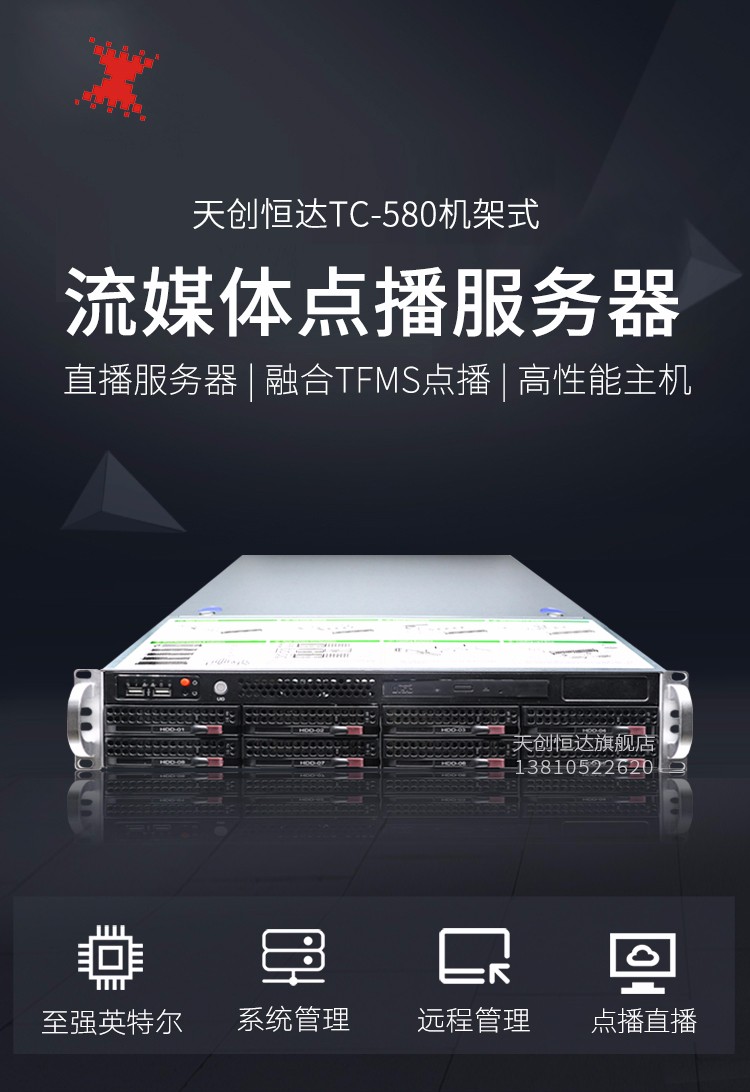 - 商品名称:天创恒达TC580直播服务器 流媒体 RTSP转RTMP 视频采集录播 融媒体TFMS点播 流媒体服务器(含300点TFMS点播软件)
