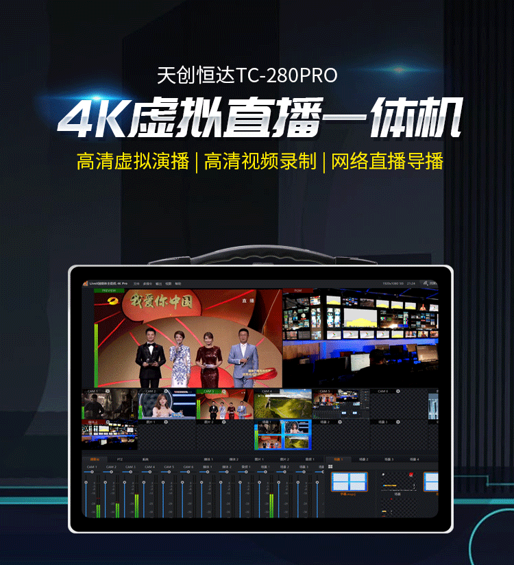 天创恒达TC-280PRO虚拟演播高清 高清导播切换台 导播录播切换台一体机
