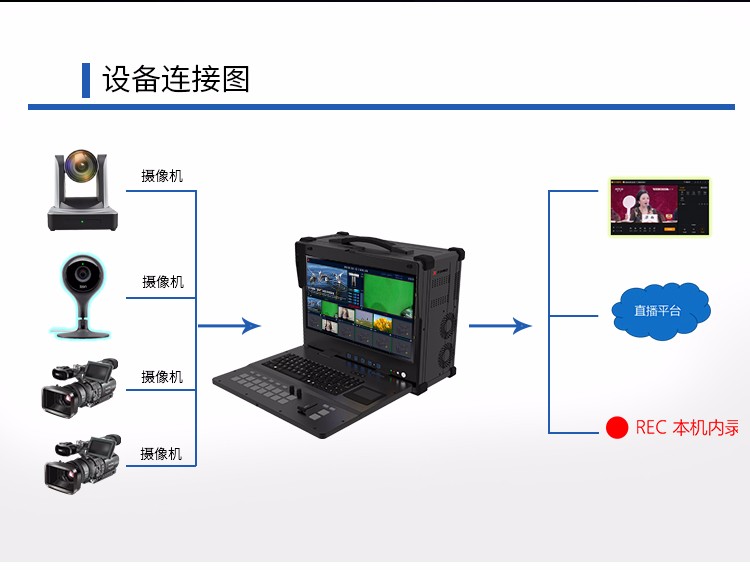 商品名称:天创恒达176高清导播一体机 便携视频切换台 网络直播切播 定制机箱 支持vMix导播软件