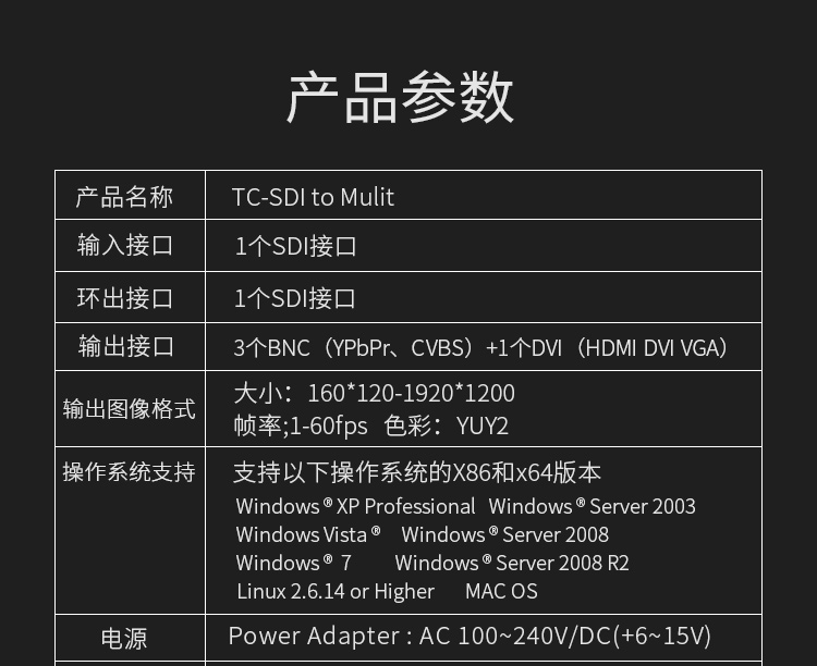 商品名称:天创恒达SDI to Multi高清视频转换器SDI转HDMI DVI CVBS 分量 AV