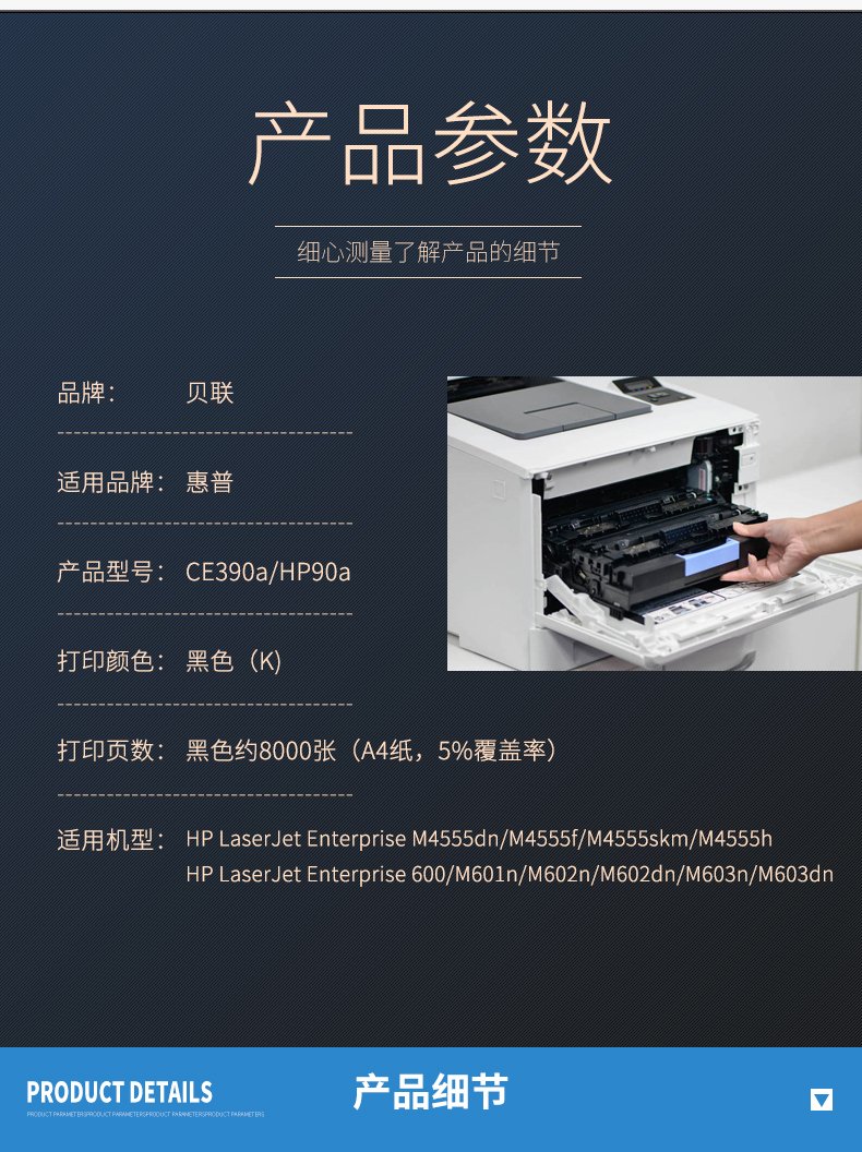 - 商品名称:贝联CE390A硒鼓 适用惠普HP 600/M601n/M601dn/M602n/dn/x/M603n/dn/xh M4555/h/fskm/M4555f