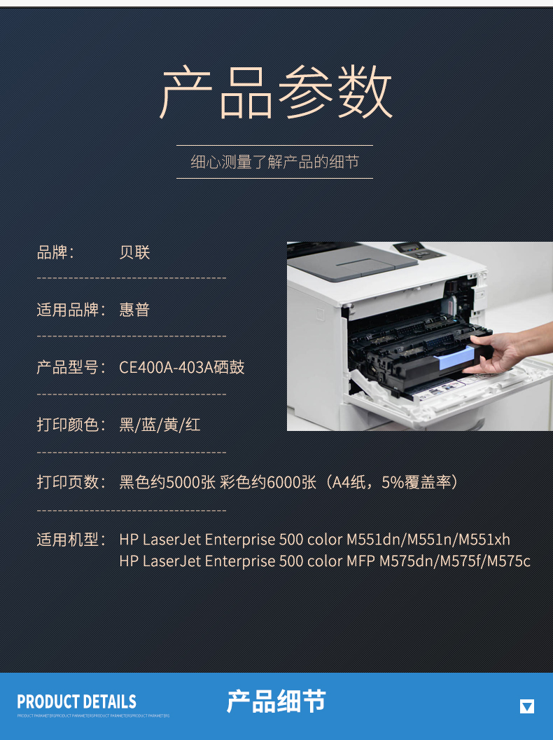 - 商品名称:贝联CE401A蓝色硒鼓适用惠普HP 551n/575dn/fw/570dw