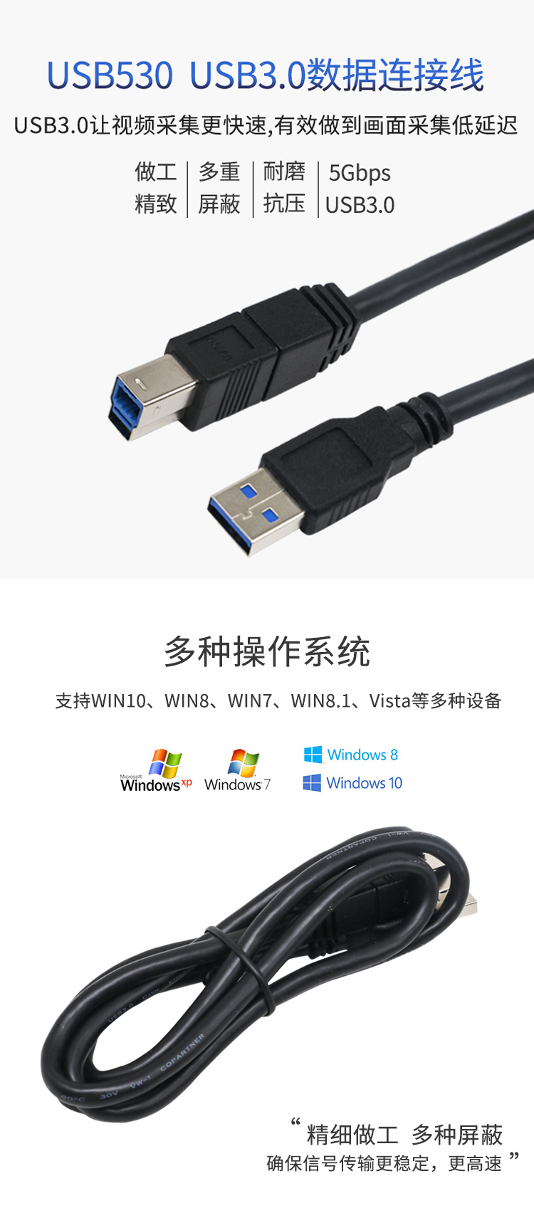 天创恒达 UB530采集卡专用数据线 H型 USB3.0 电脑高清视频线材 UB530 USB线