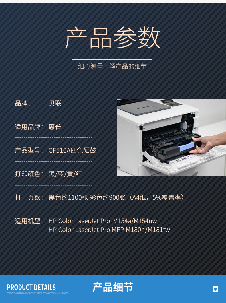 - 商品名称:贝联CF512A黄色硒鼓 204A 适用惠普HP M154a/M154nw/M180N/M181FW