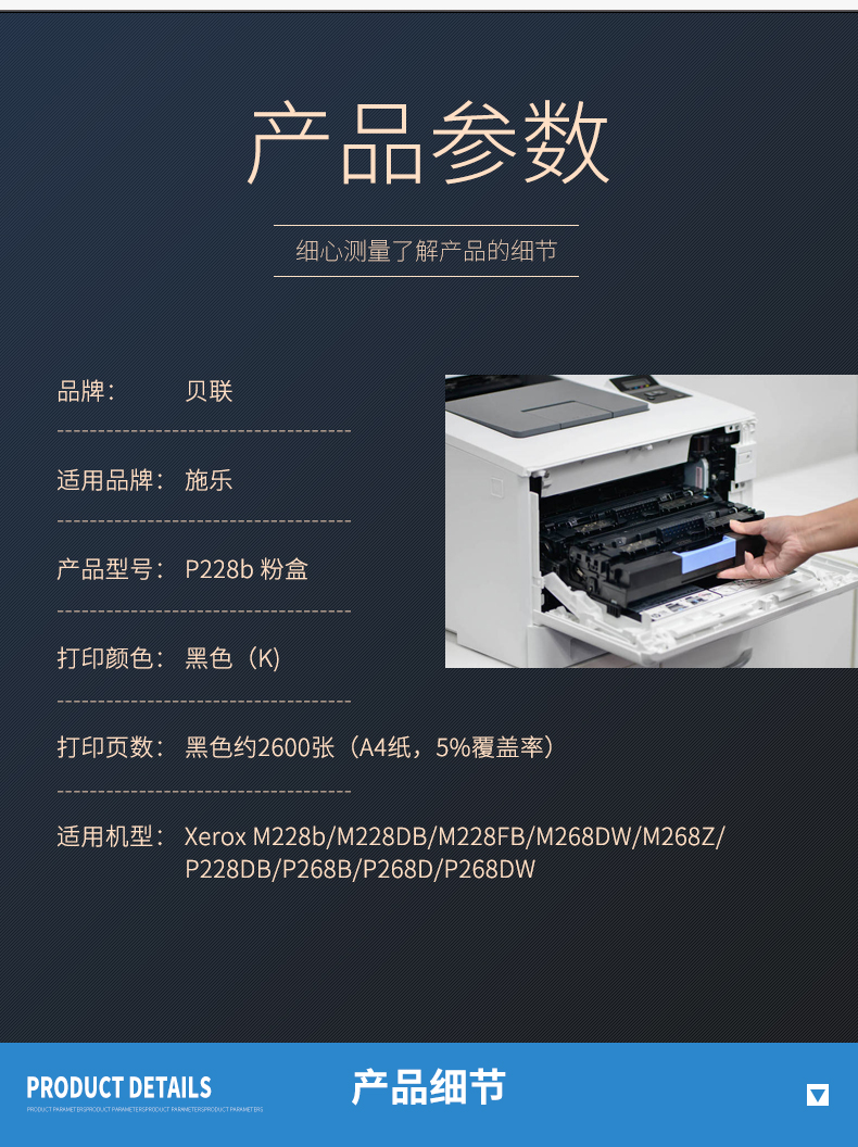 商品名称:贝联P228b墨粉盒 适用富士施乐 m228b/m228z/m268dw/p268dw/p268b/p228db