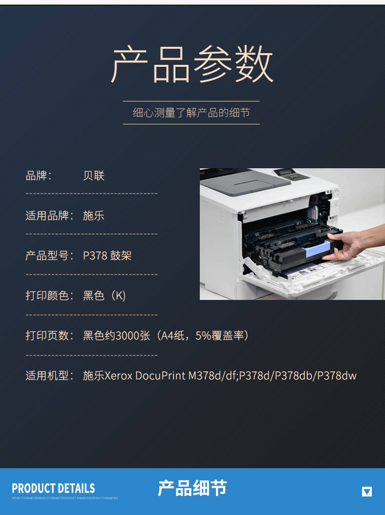 商品名称:贝联P378d硒鼓鼓架 适用施乐DocuPrint M378d/M378df/P378d/P378db/P378dw