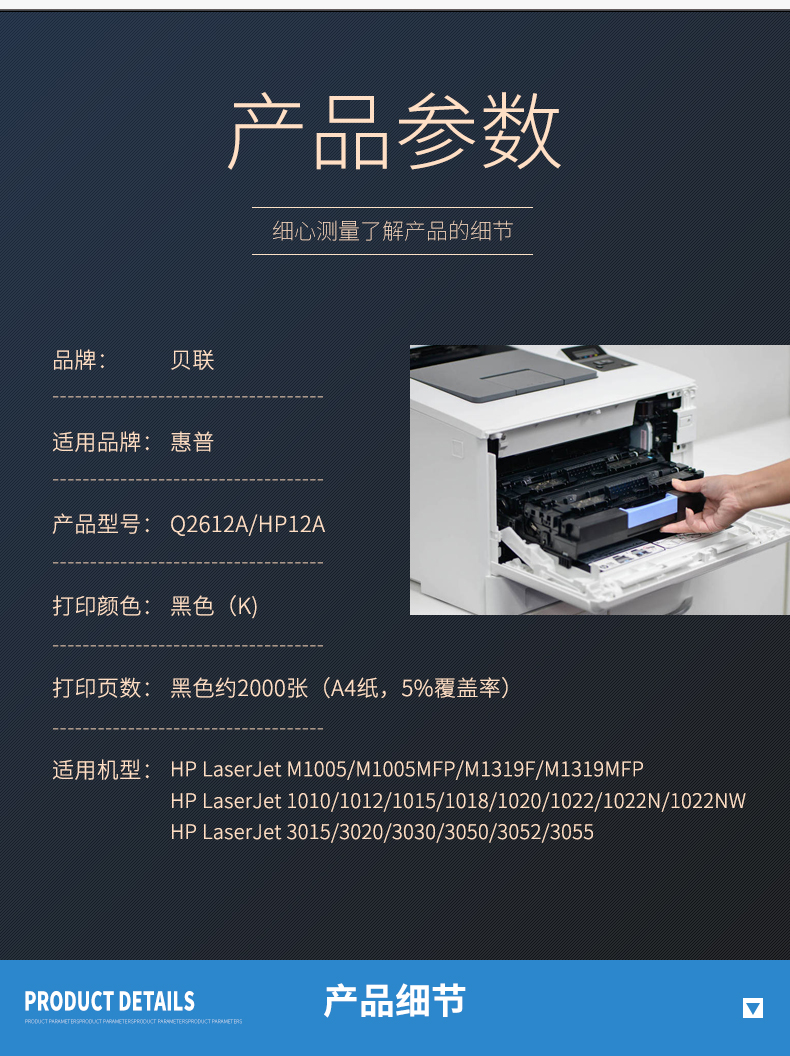 商品名称:贝联Q2612A硒鼓 适用惠普HP1020/1010/M1005/1018/1022/3055佳能303/FX9/LBP2900