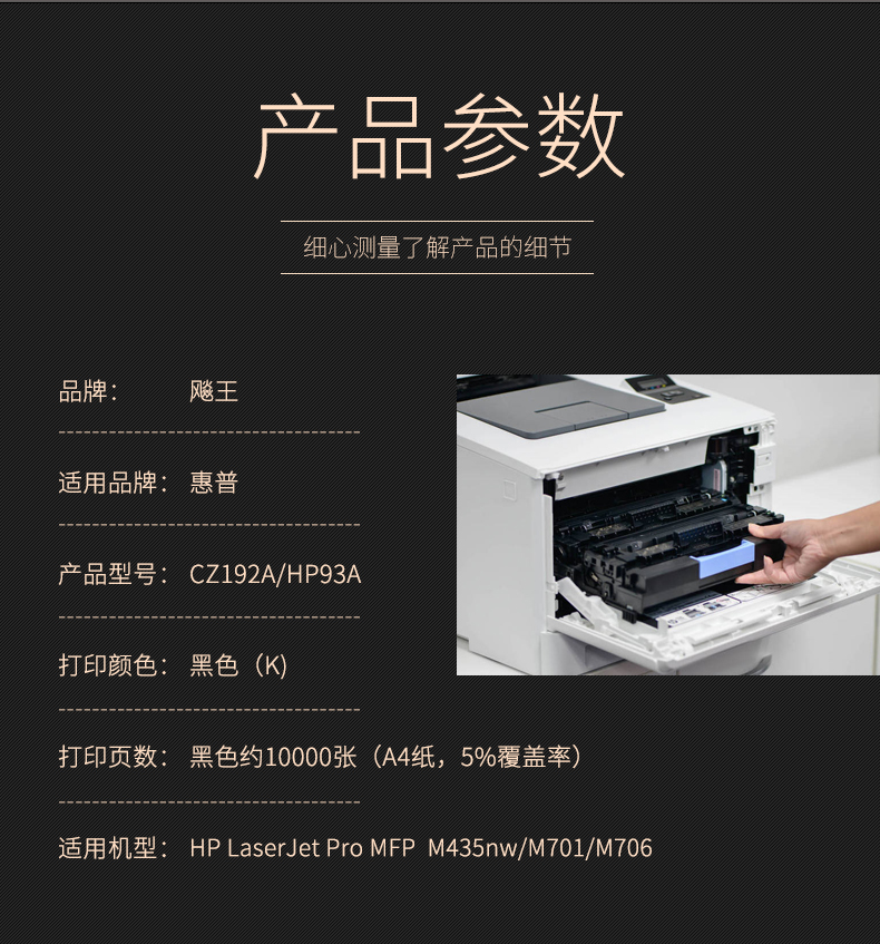 - 适用机型:适用惠普HP LaserJet Pro M435nw/M701a/M701n/M706n/93A